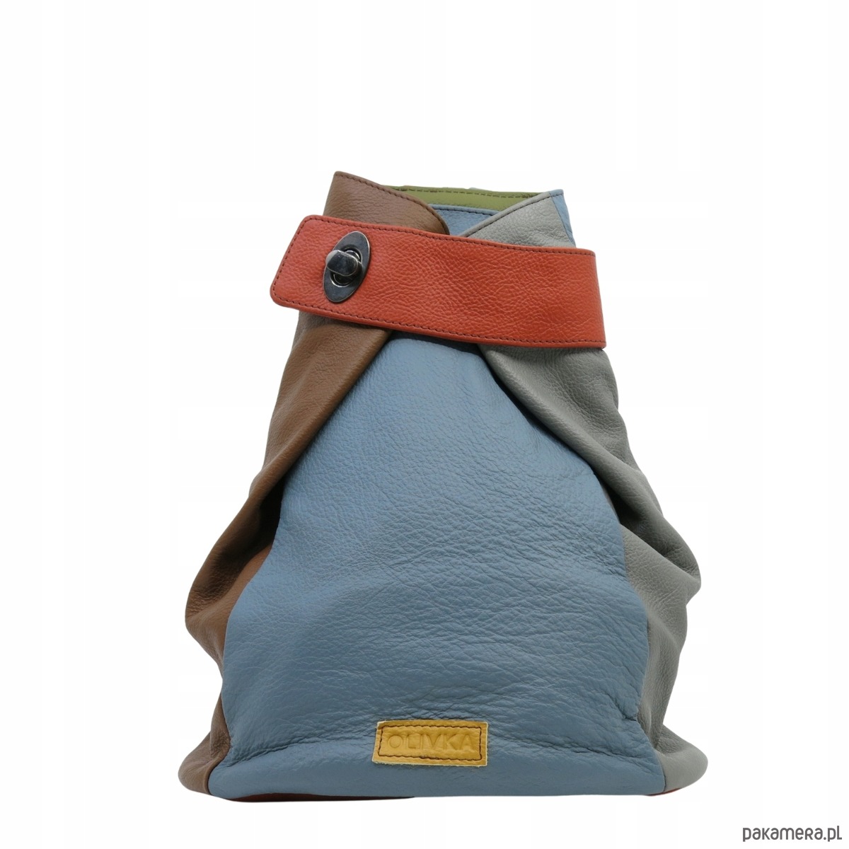 Plecak damski klasyczny skórzany kolorowy regulowane szelki kieszeń OLIVKA