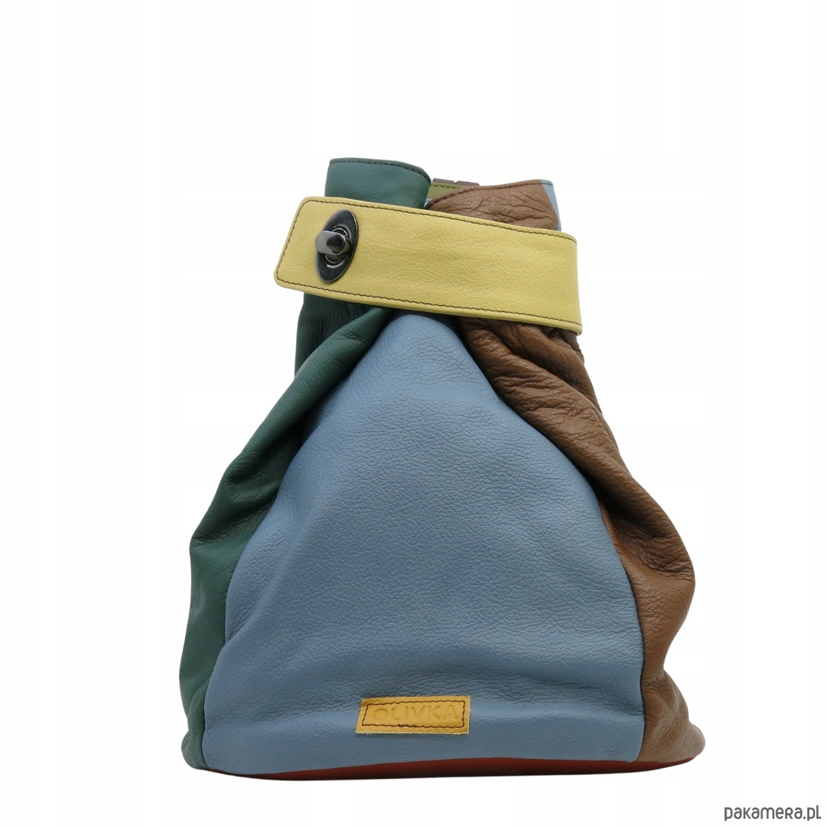 Plecak damski klasyczny skórzany kolorowy regulowane szelki kieszeń OLIVKA