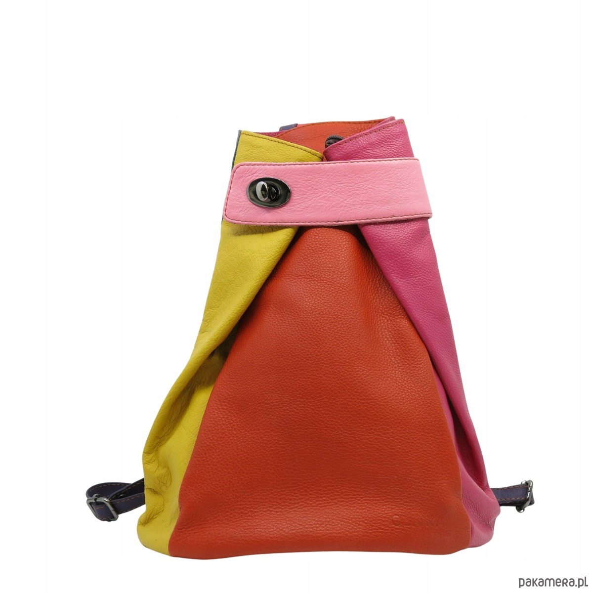 Plecak damski klasyczny skórzany kolorowy regulowane szelki kieszeń OLIVKA