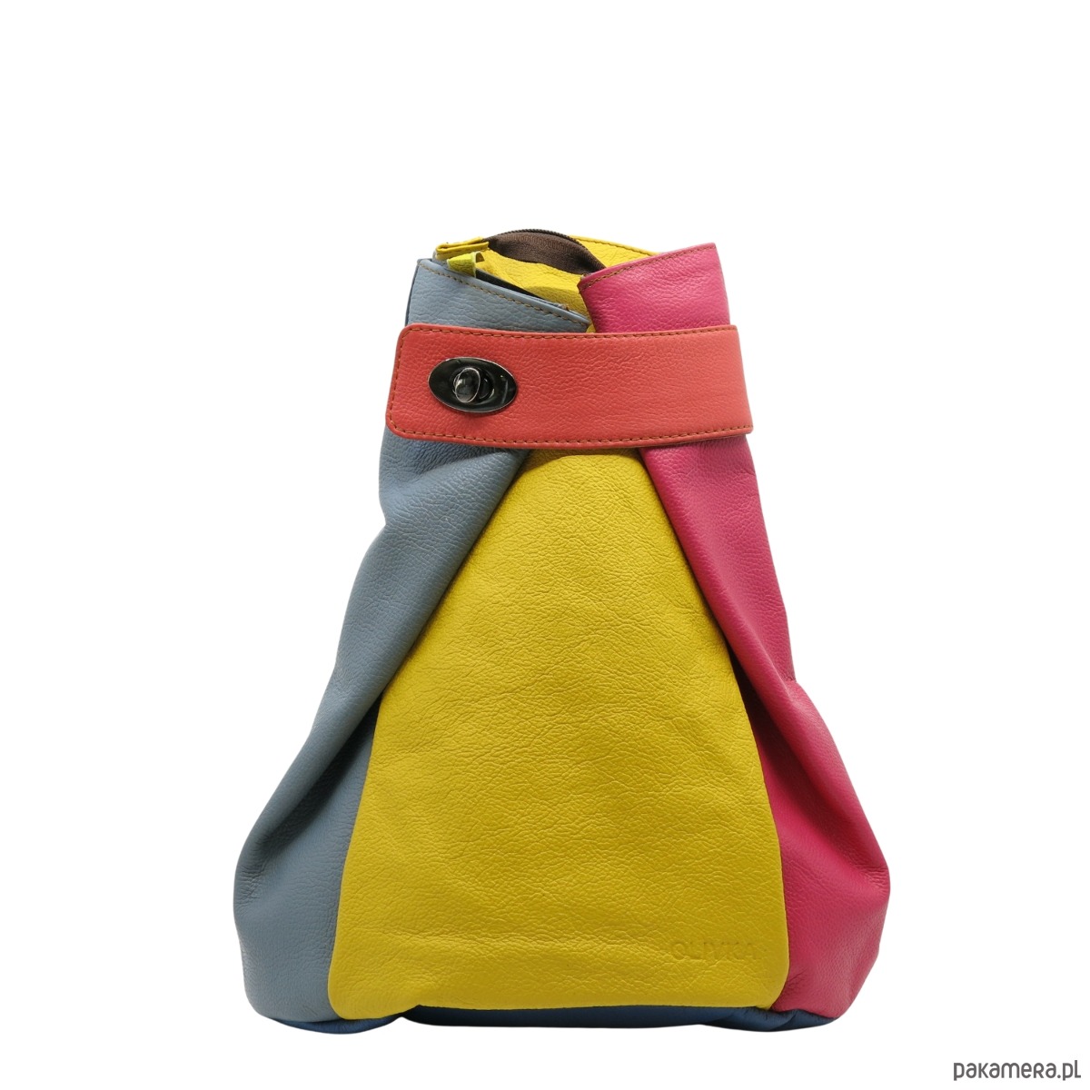 Plecak damski klasyczny skórzany kolorowy regulowane szelki kieszeń OLIVKA