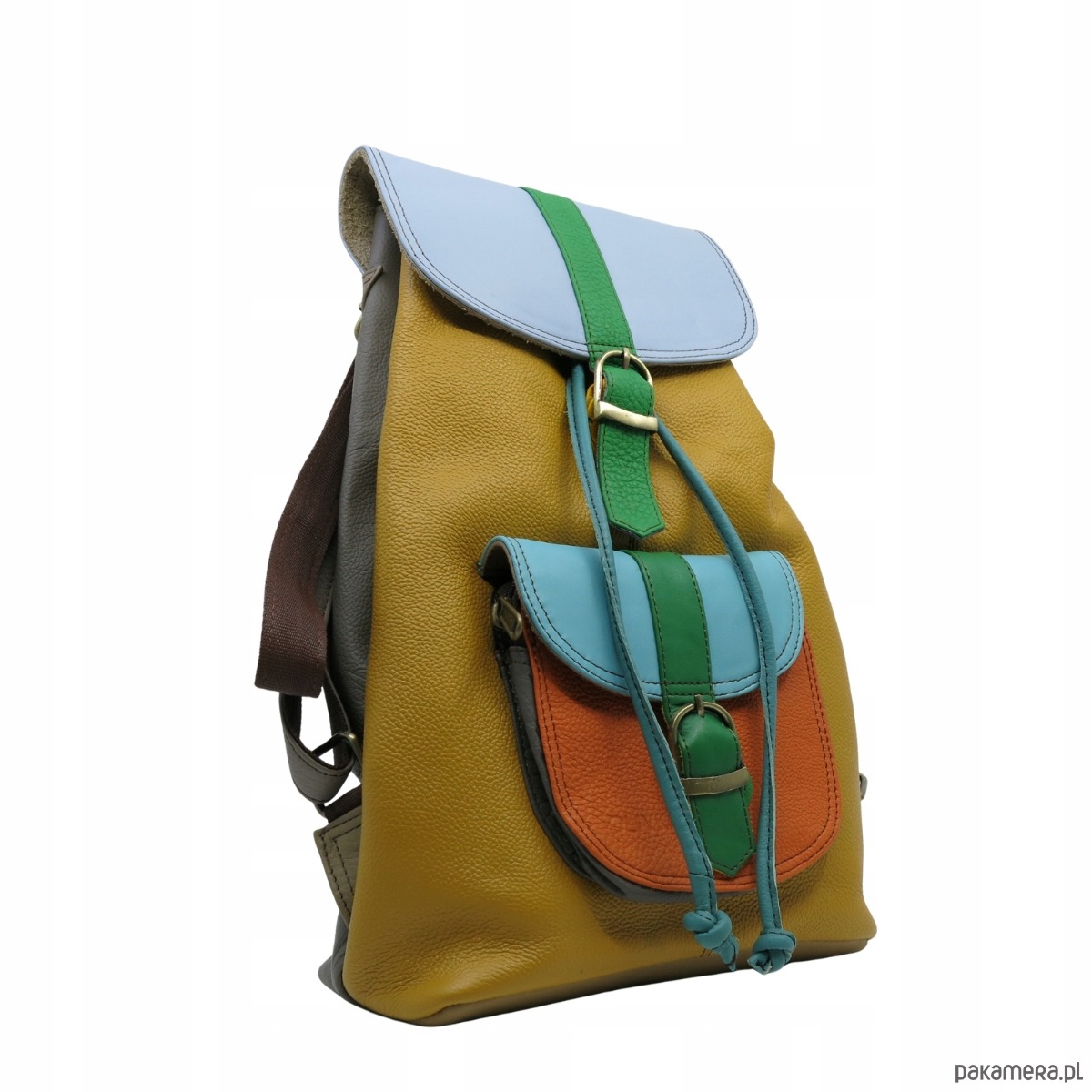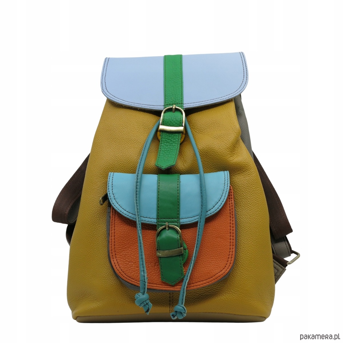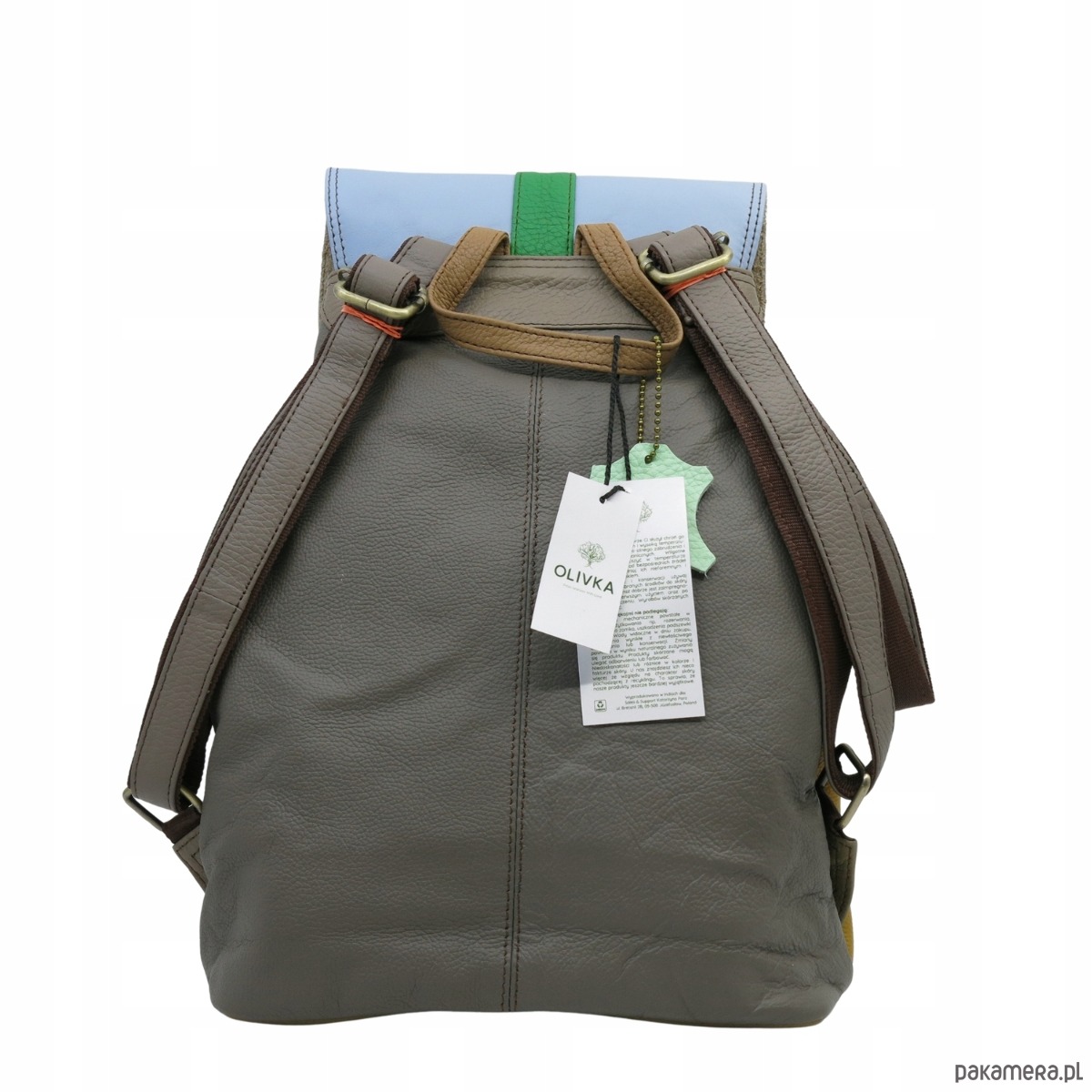 Plecak damski kolorowy skórzany regulowane szelki pojemny OLIVKA