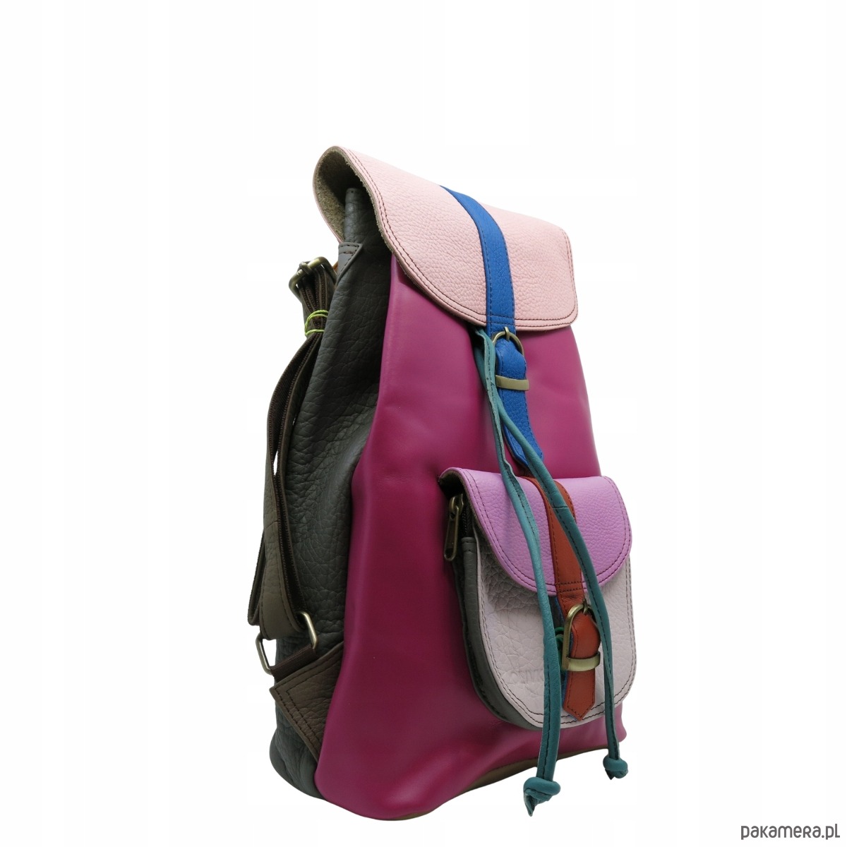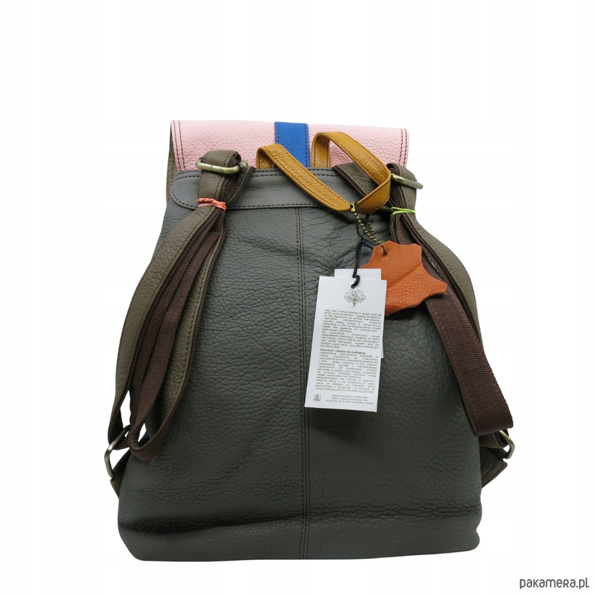 Plecak damski kolorowy skórzany regulowane szelki pojemny OLIVKA