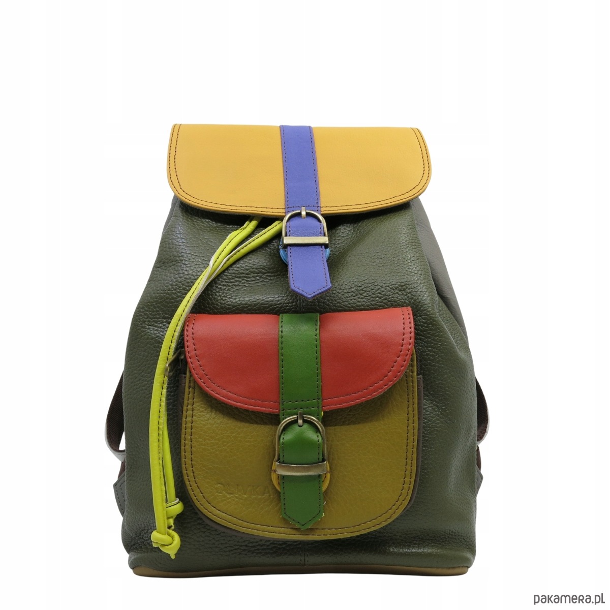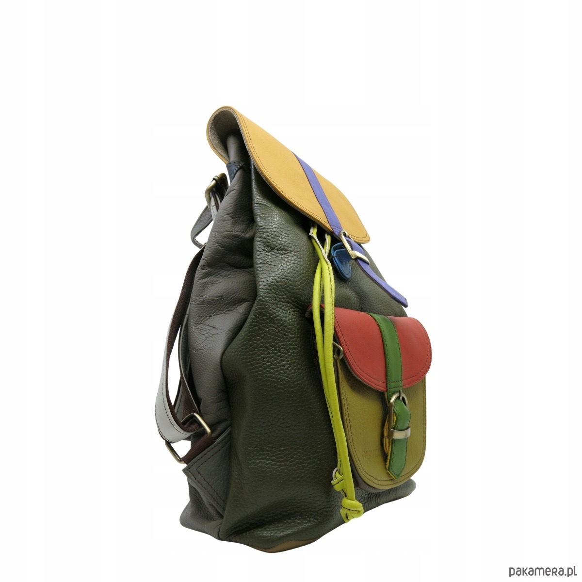 Plecak damski kolorowy skórzany regulowane szelki pojemny OLIVKA