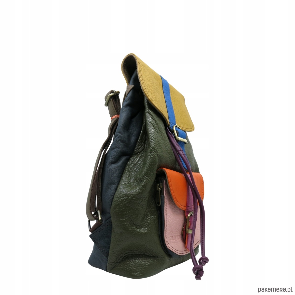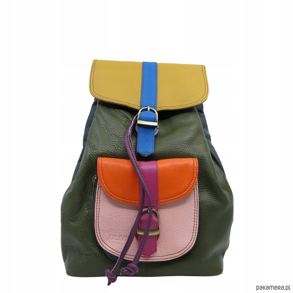 Plecak damski kolorowy skórzany regulowane szelki pojemny OLIVKA