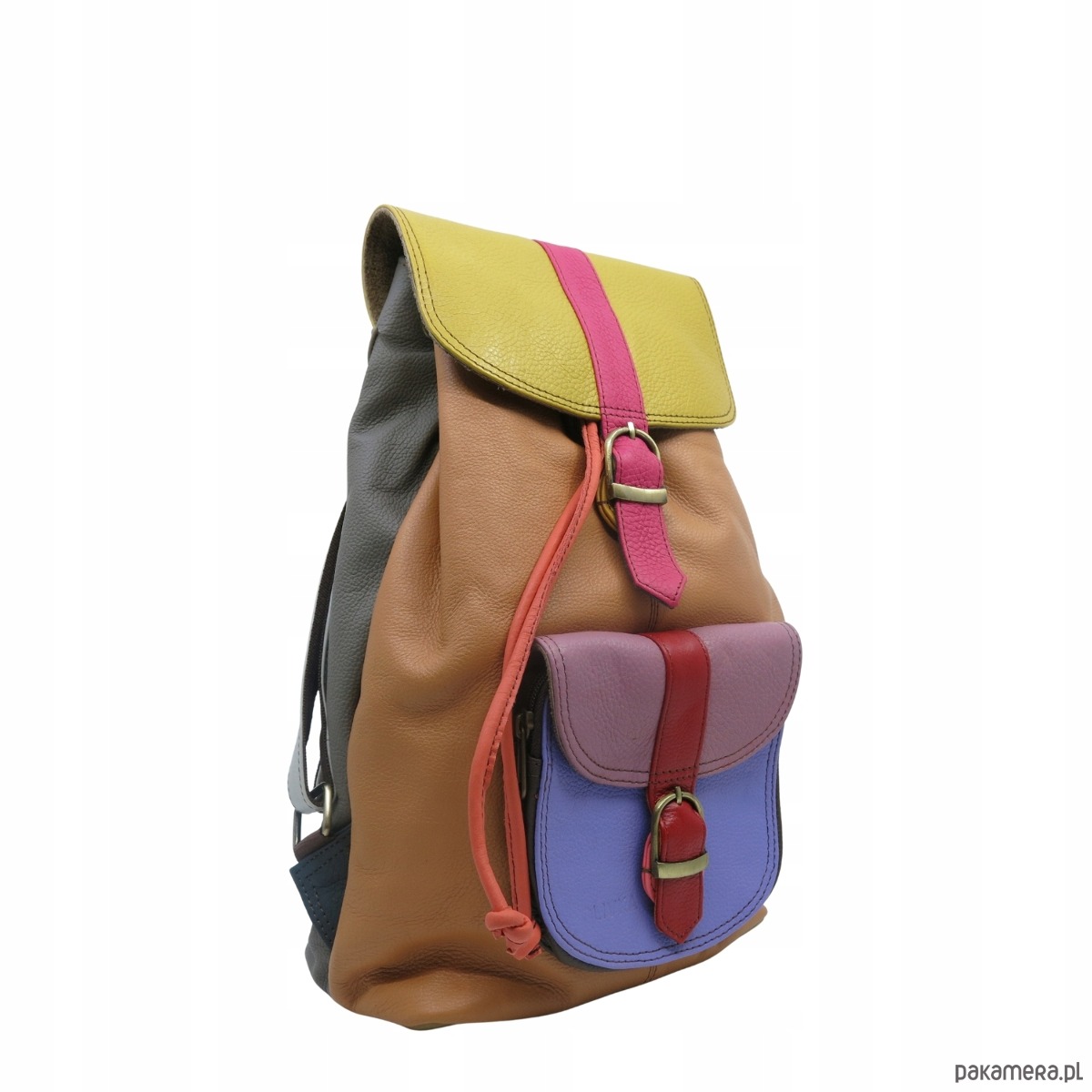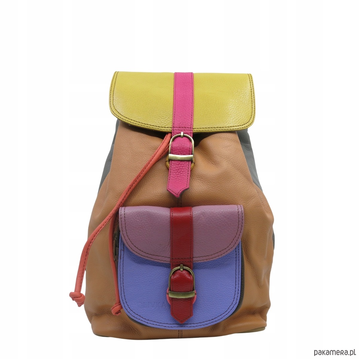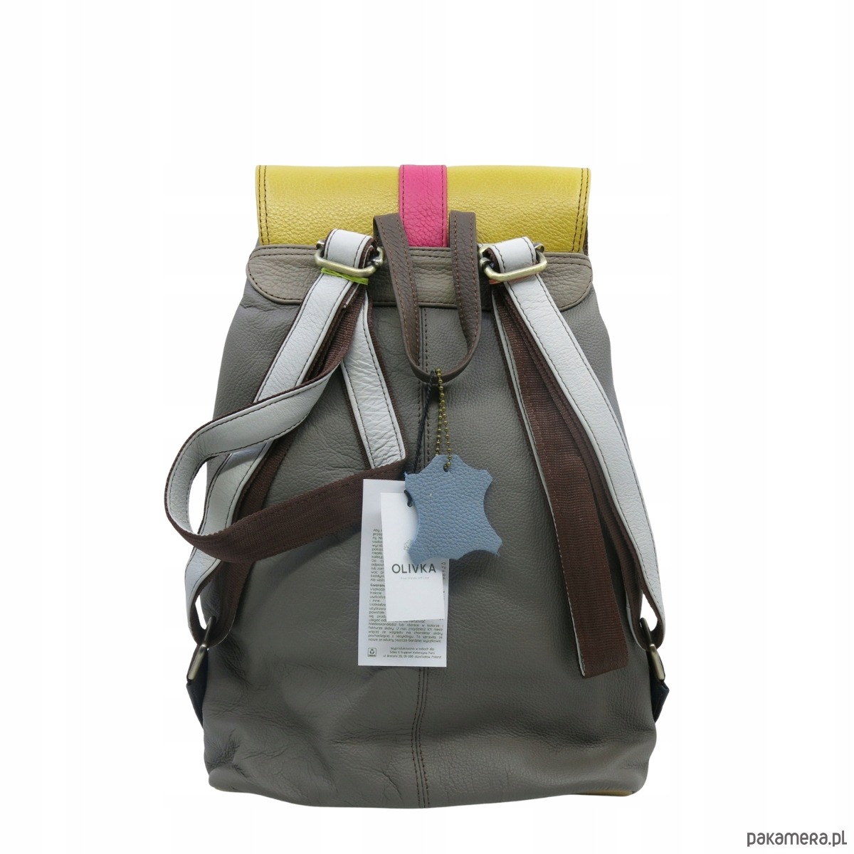 Plecak damski kolorowy skórzany regulowane szelki pojemny OLIVKA