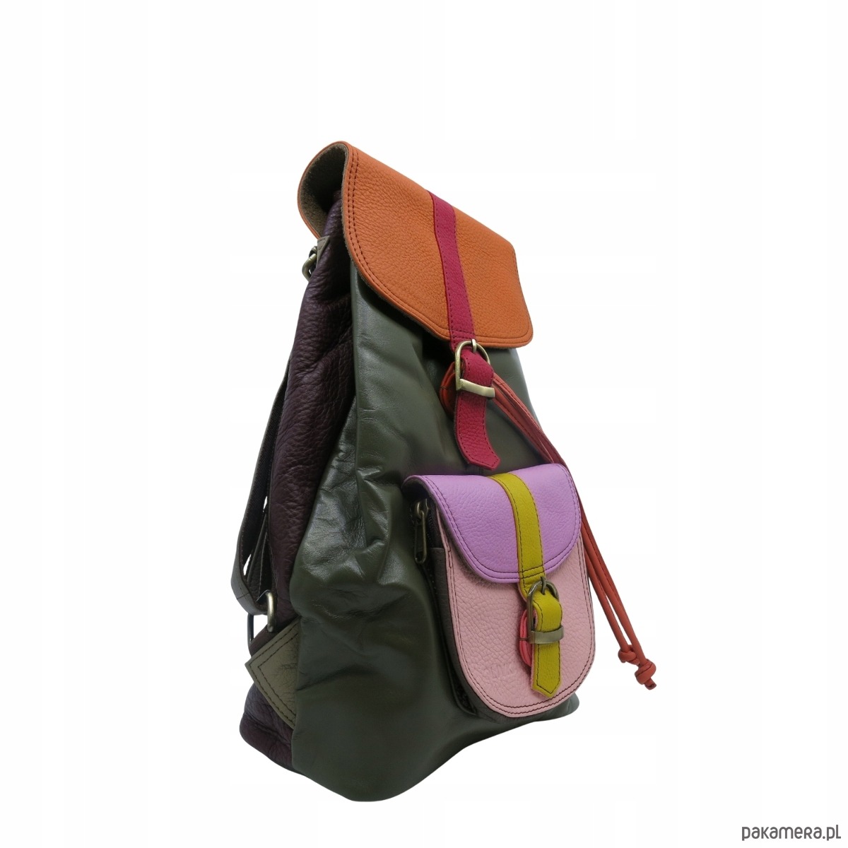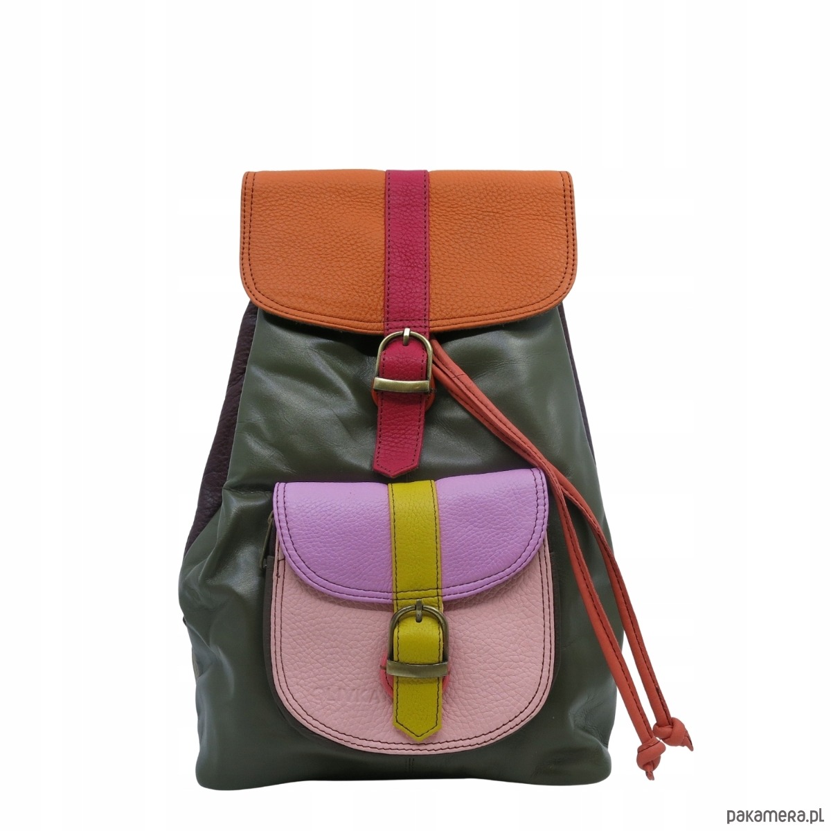 Plecak damski kolorowy skórzany regulowane szelki pojemny OLIVKA