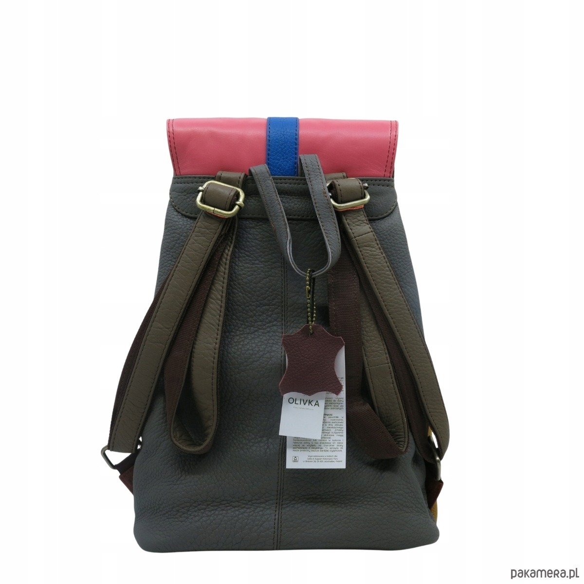 Plecak damski kolorowy skórzany regulowane szelki pojemny OLIVKA