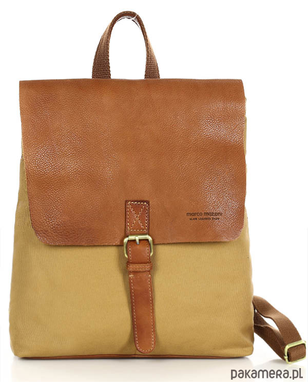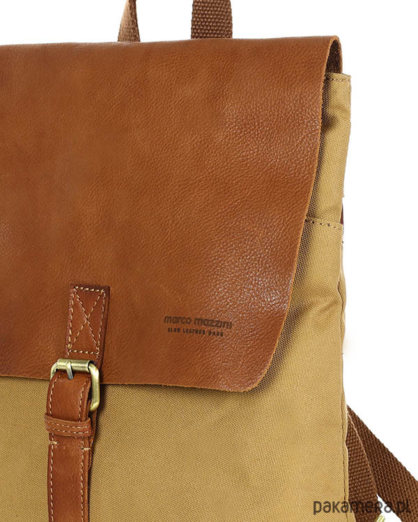 Torebka plecak z kolekcji Marco Mazzini w kolorze brązowym wykonana jest z mocnego materiału z dodatkami z naturalnej skóry licowej. Materiał jaki został tu zastosowany jest nieprzemakalny i łatwy w czyszczeniu. Klapa plecaka oraz spód wykonane są z naturalnej skóry. Dzięki zastosowaniu materiału, torebko plecak odznacza się wyjątkową lekkością. Bardzo uniwersalny model, który dobrze zagra z większością stylizacji. Bez względu na okazję – czy to podróż, spacer czy codzienne noszenie – ten plecak zawsze prezentuje się stylowo.