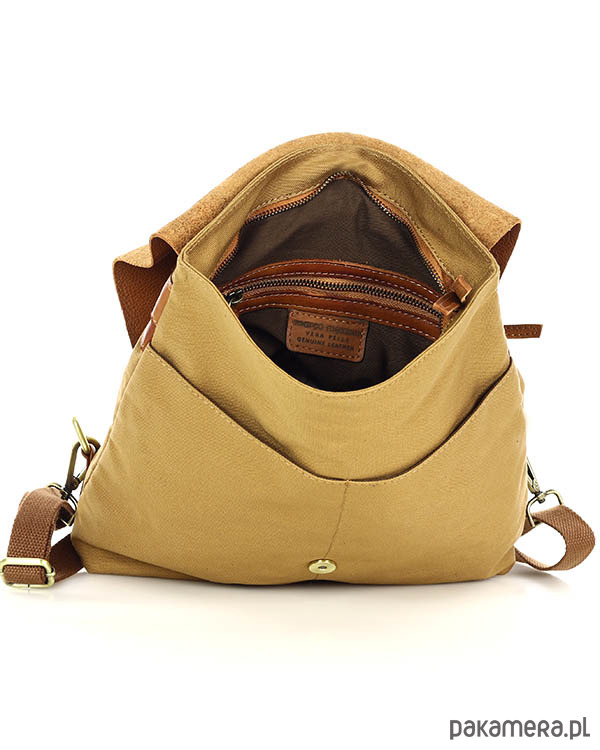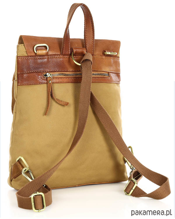 Plecak damski miejski A4 skóra + materiał - MARCO MAZZINI brąz koniak