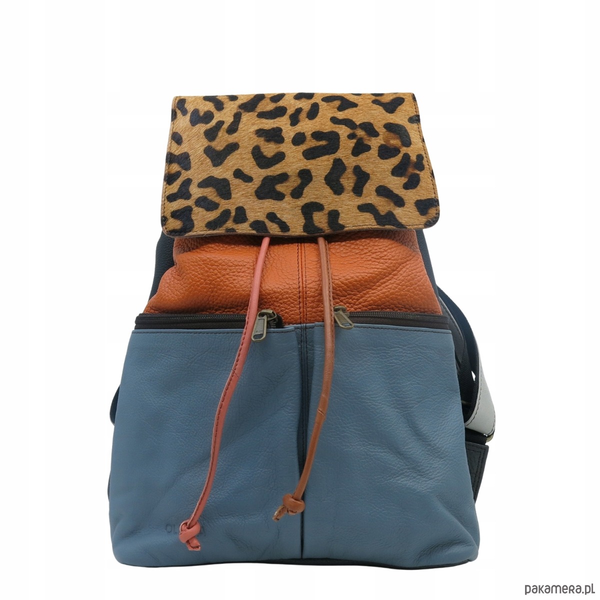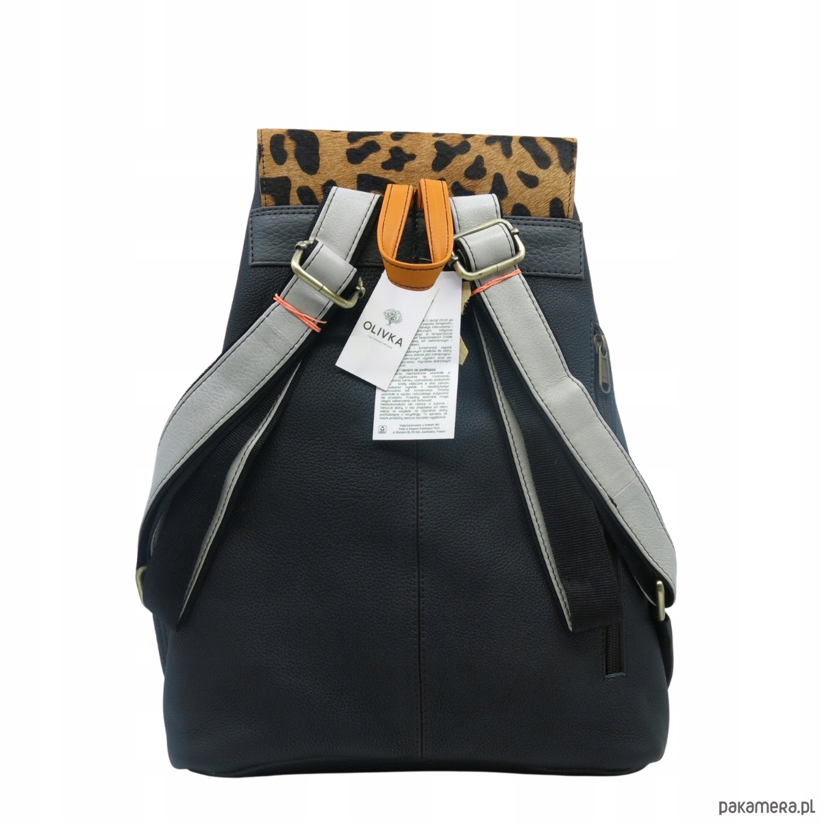 Plecak damski skórzany pojemny kieszenie regulowane szelki kolorowy OLIVKA