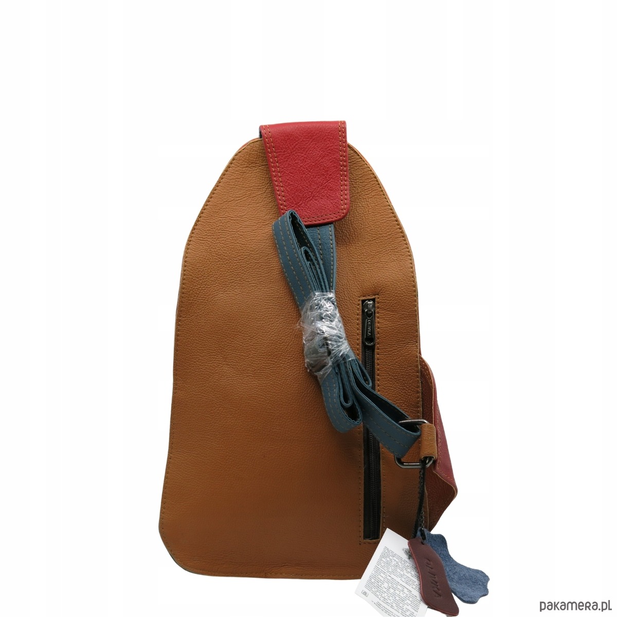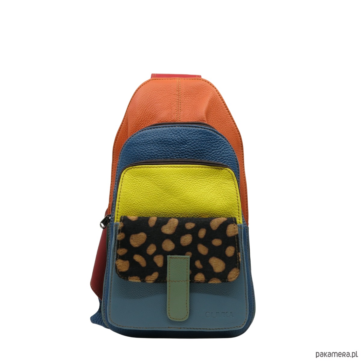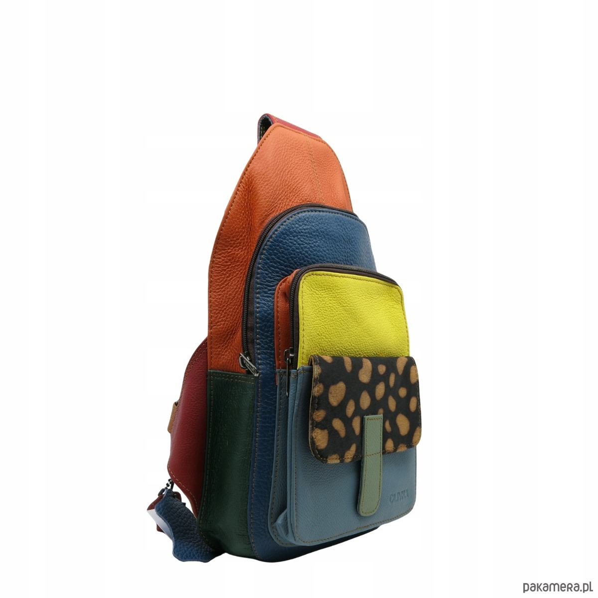 Plecak na jedno ramię skórzany kolorowy damski kieszenie ze skrawków OLIVKA