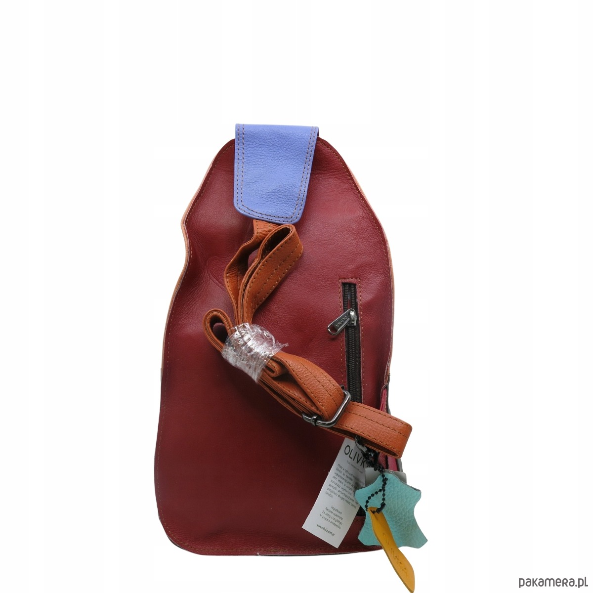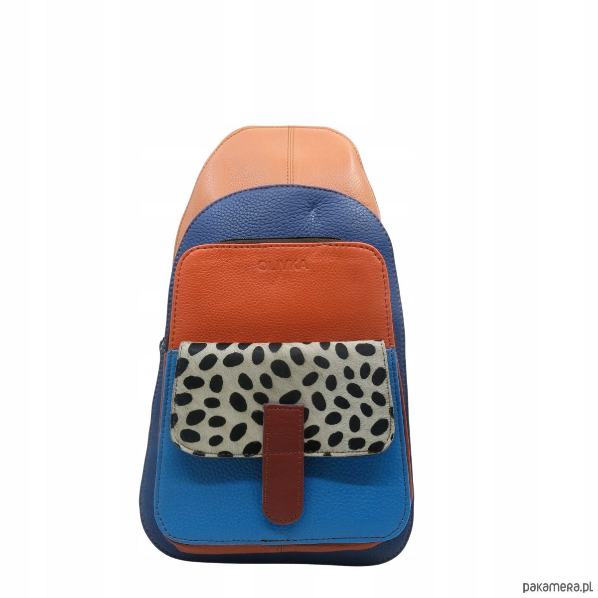 Plecak na jedno ramię skórzany kolorowy damski kieszenie ze skrawków OLIVKA