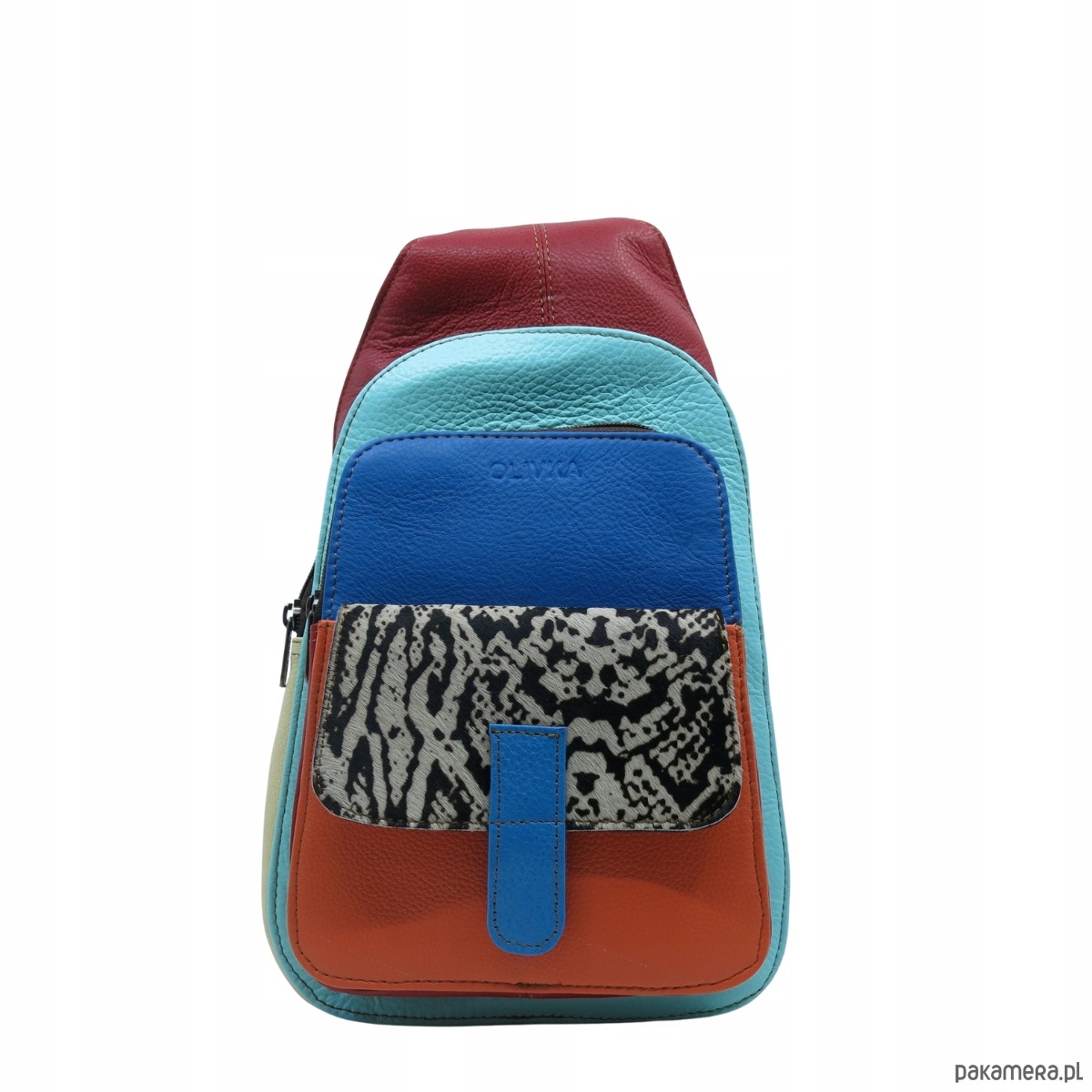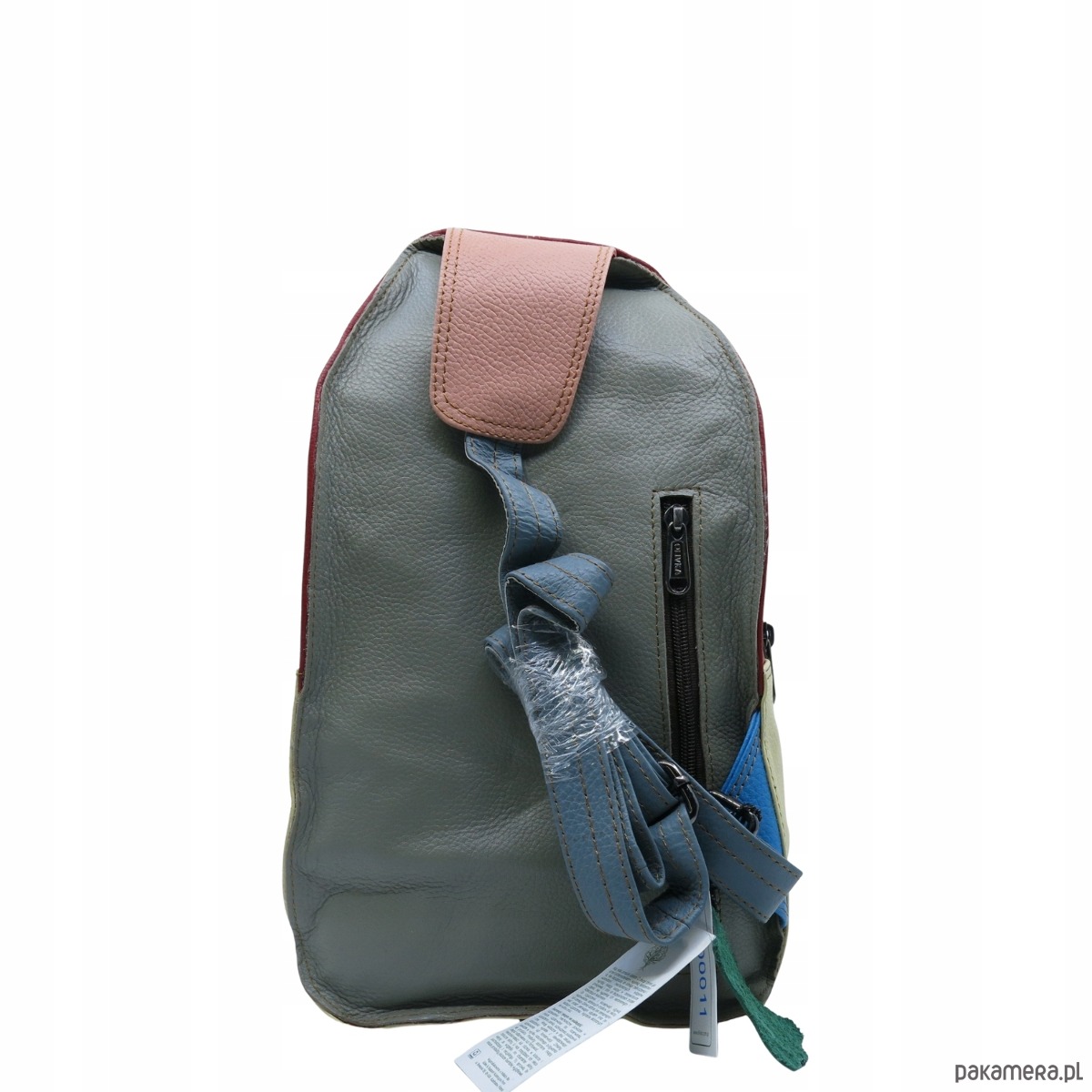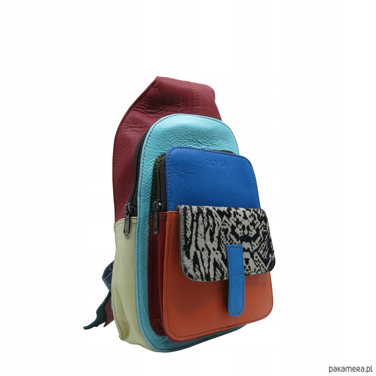 Plecak na jedno ramię skórzany kolorowy damski kieszenie ze skrawków OLIVKA