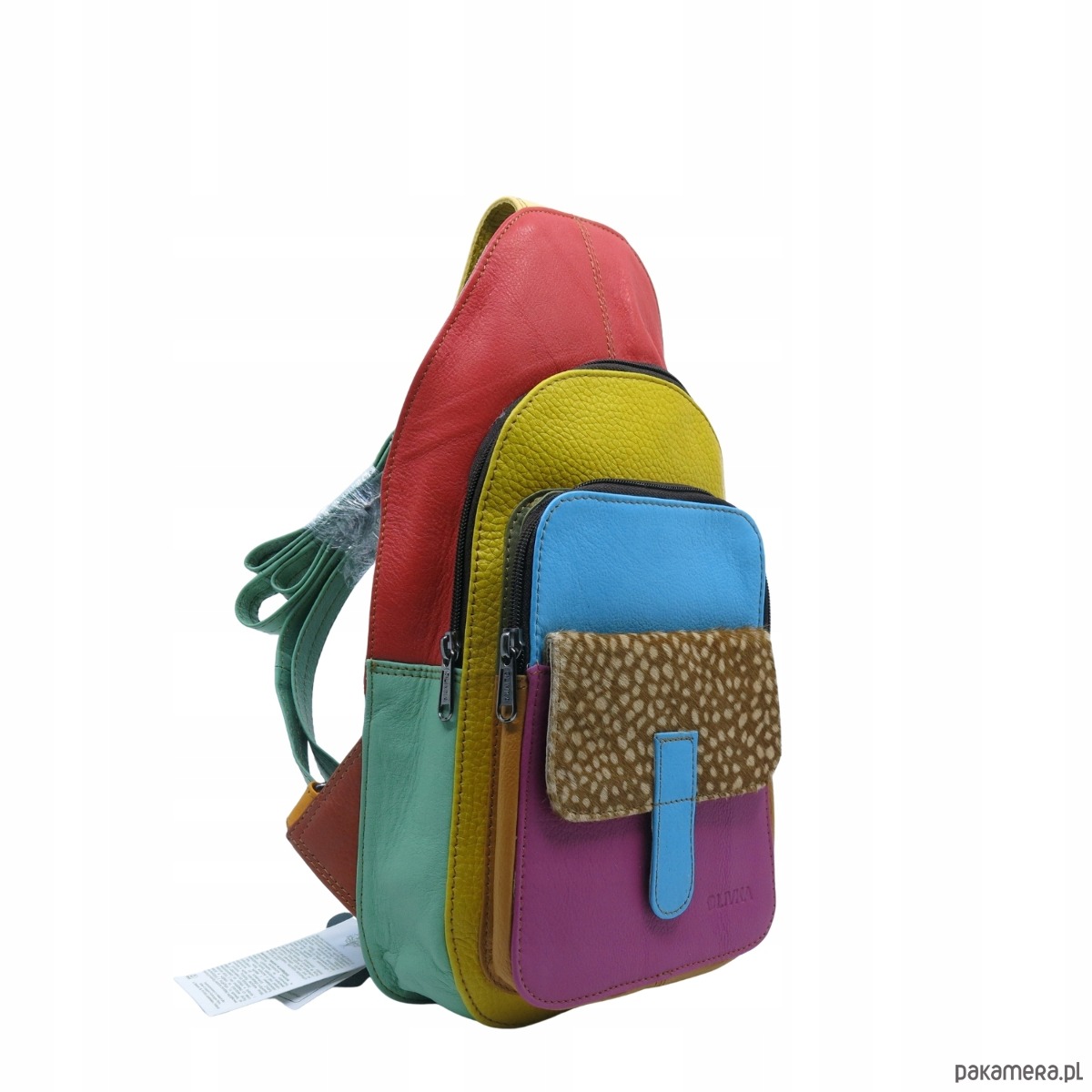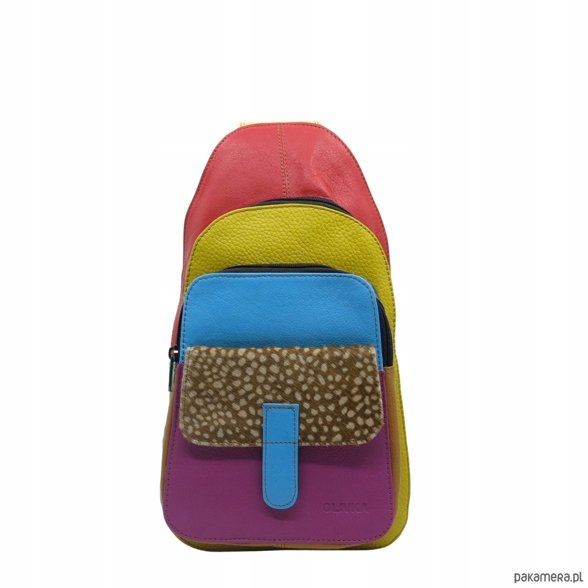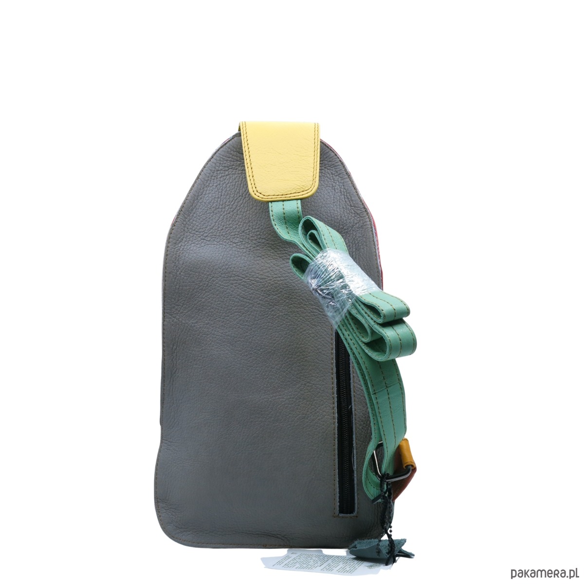 Plecak na jedno ramię skórzany kolorowy damski kieszenie ze skrawków OLIVKA
