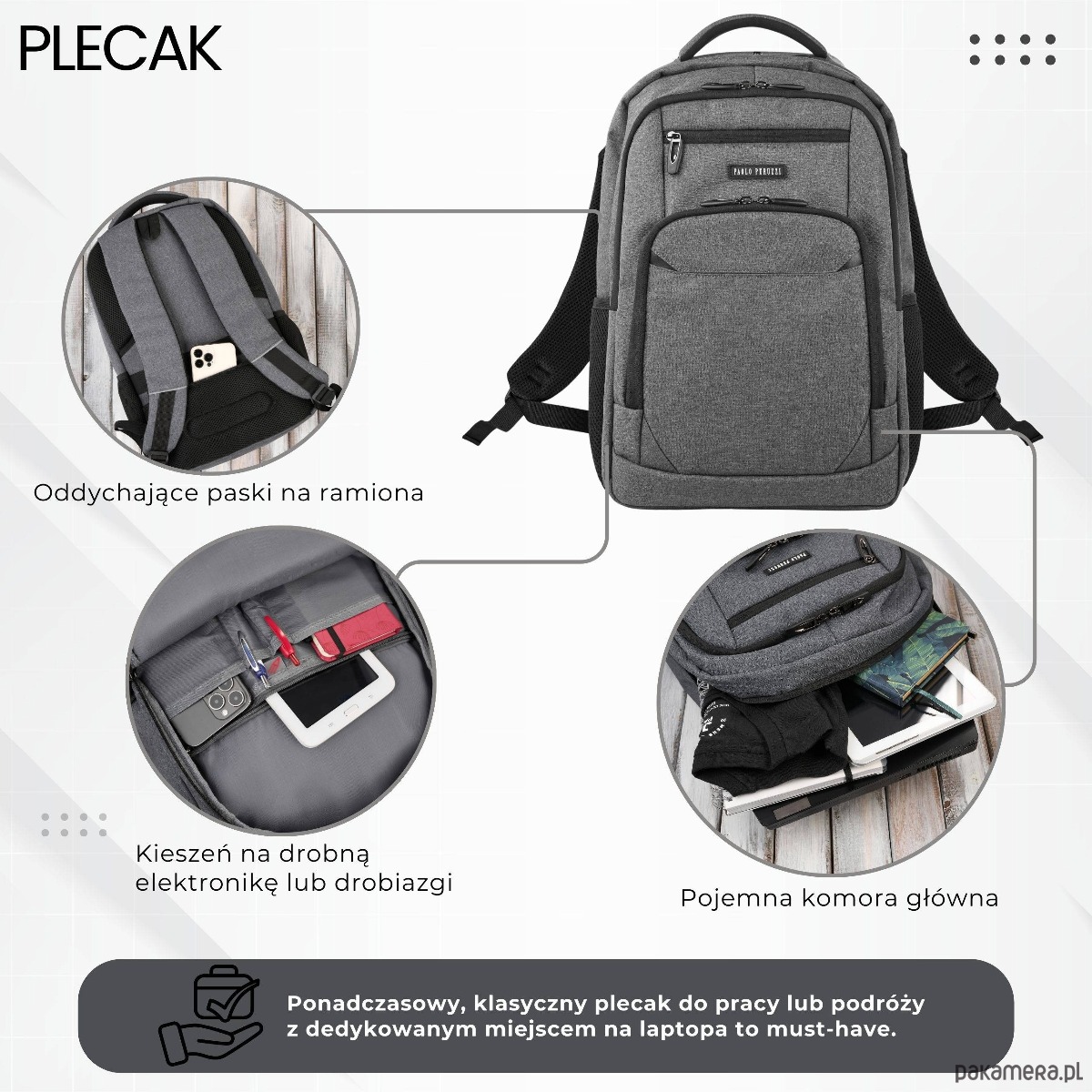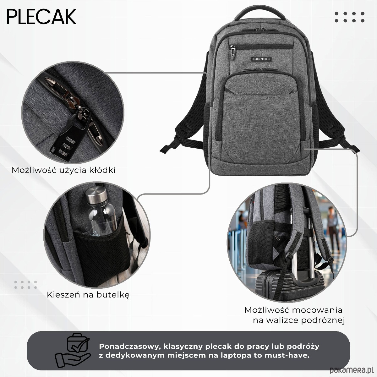 Plecak męski Paolo Peruzzi AS-03-DGR – elegancja, profesjonalizm i bezpieczeństwo w codziennym użytkowaniu