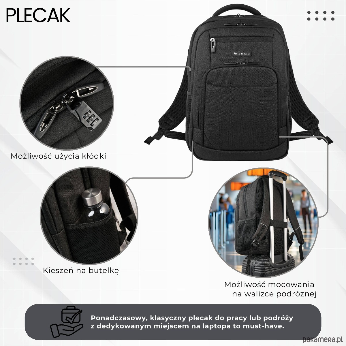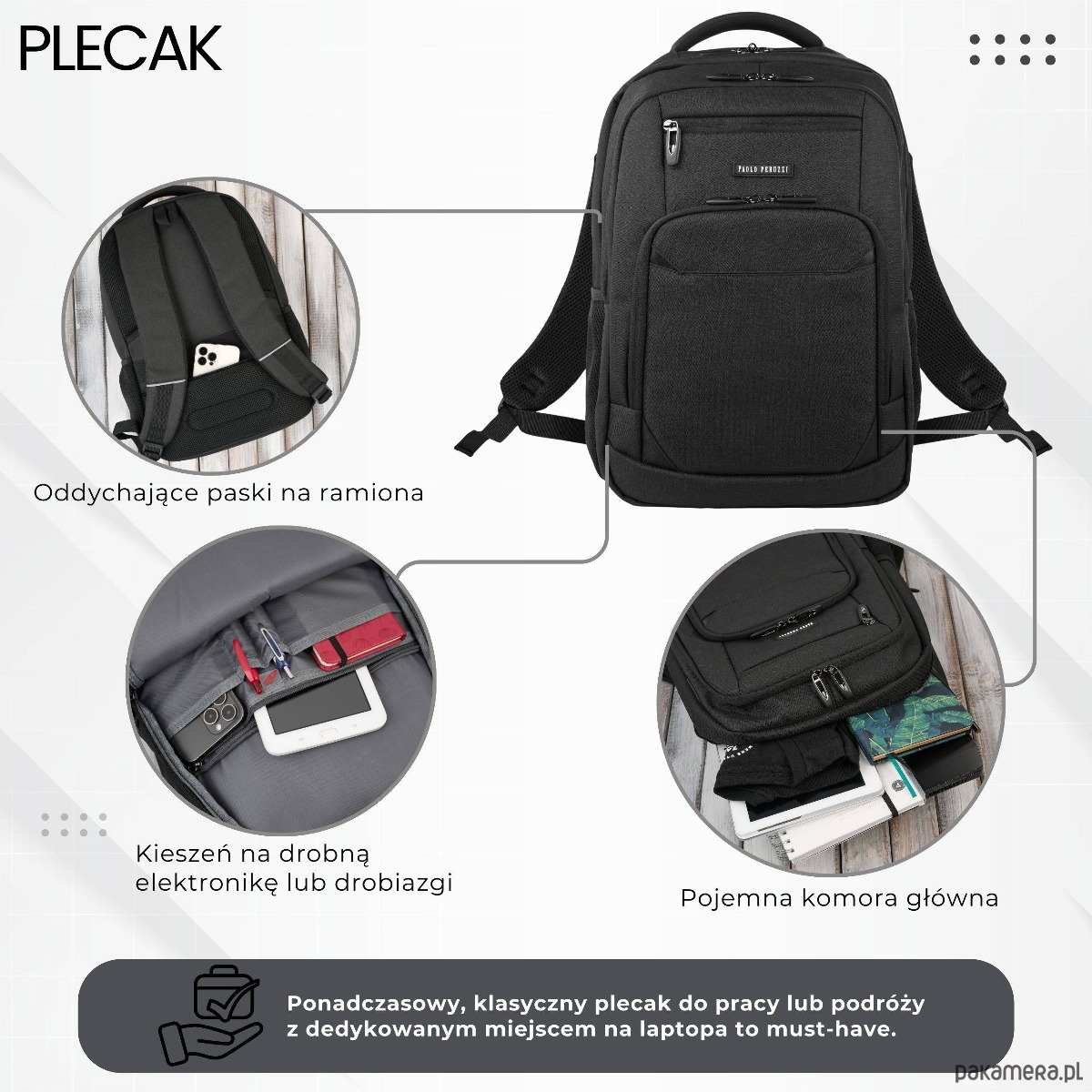 Plecak Paolo Peruzzi AS-03-BL to inwestycja w wygodę i profesjonalny wizerunek.