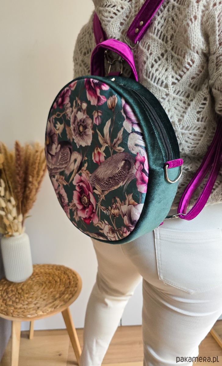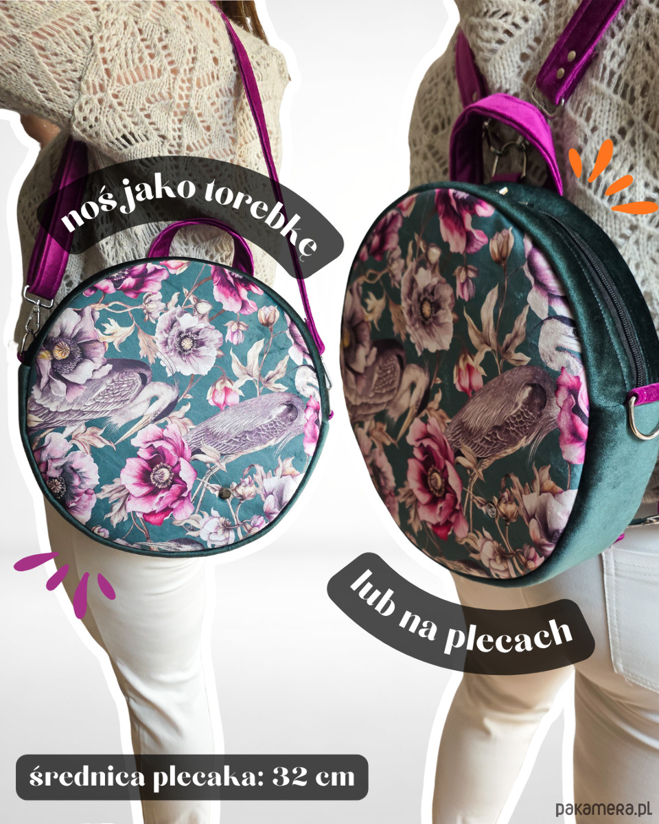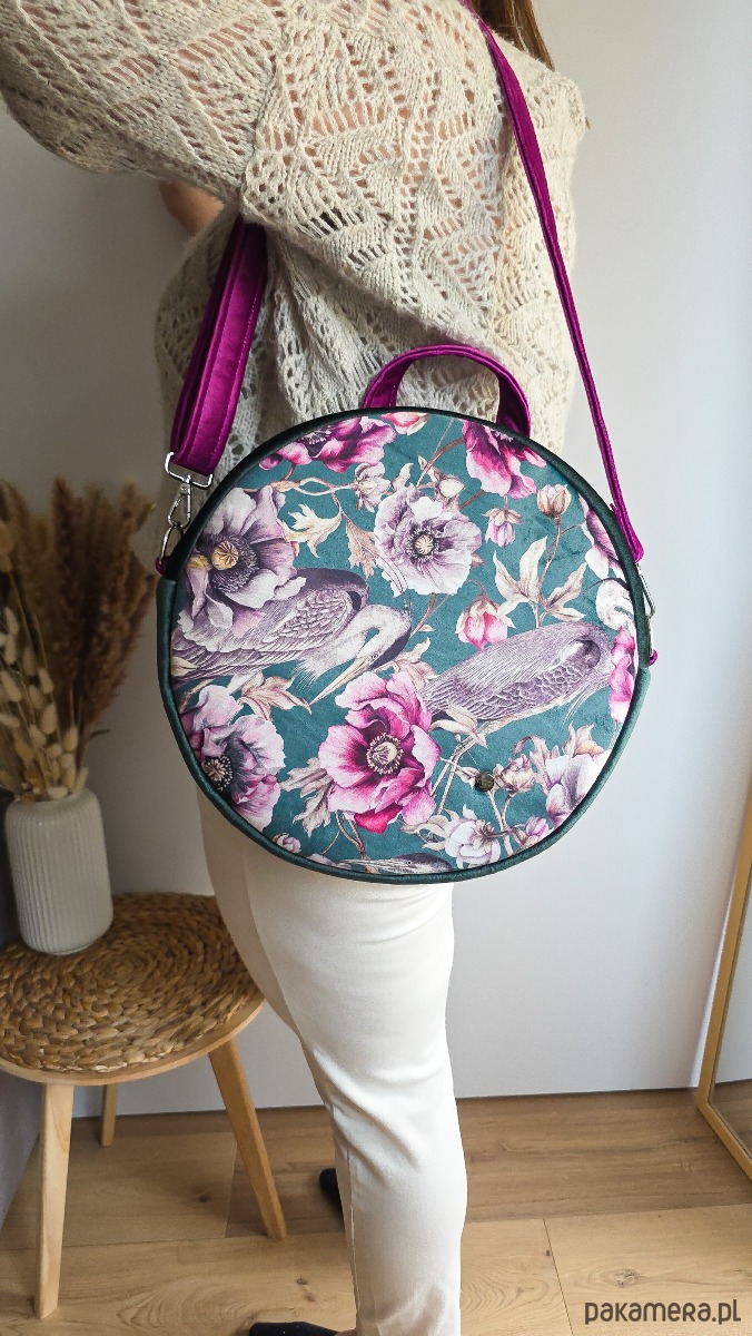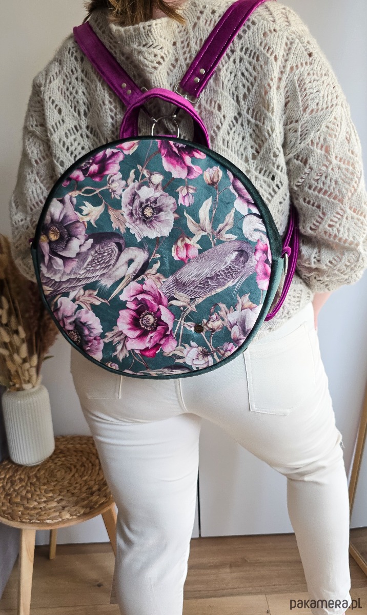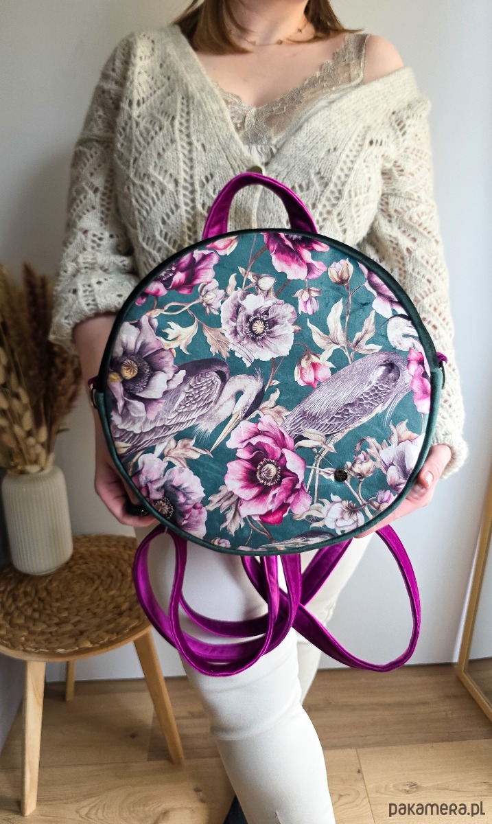 Plecak Okrągły z Motywem Kwiatów i Czapli