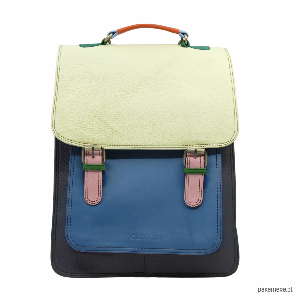Plecak skórzany damski torebka 2w1 elegancki pojemny mieści A4 OLIVKA
