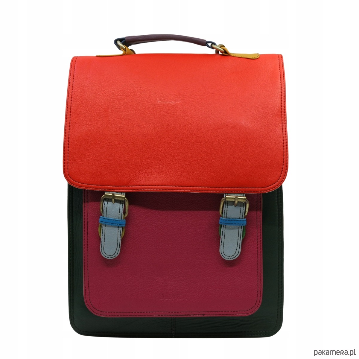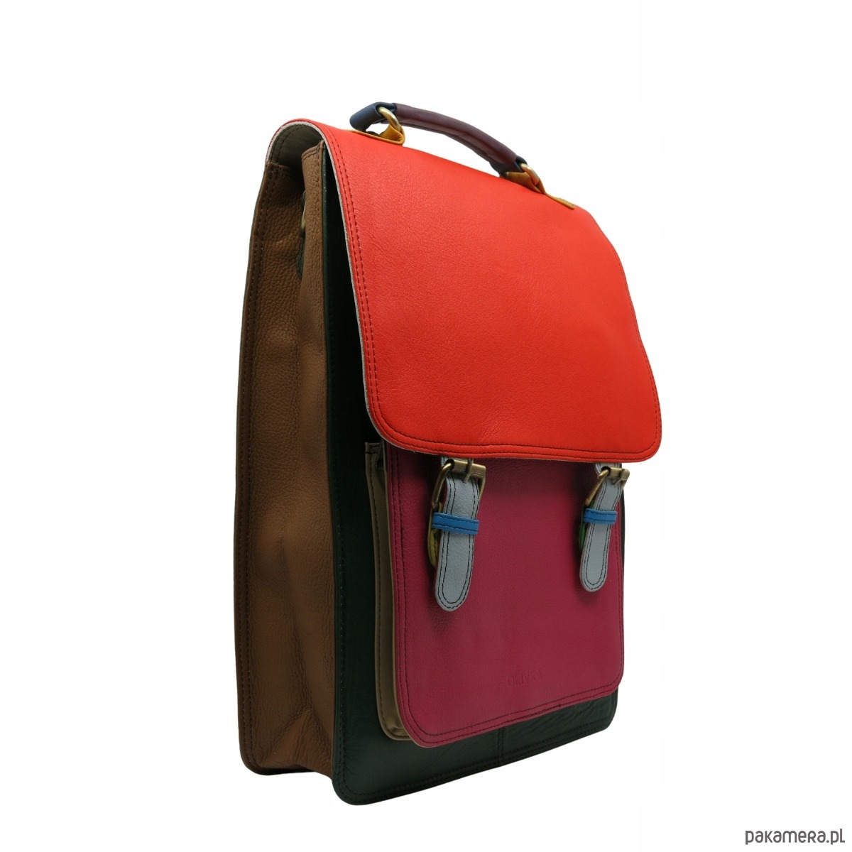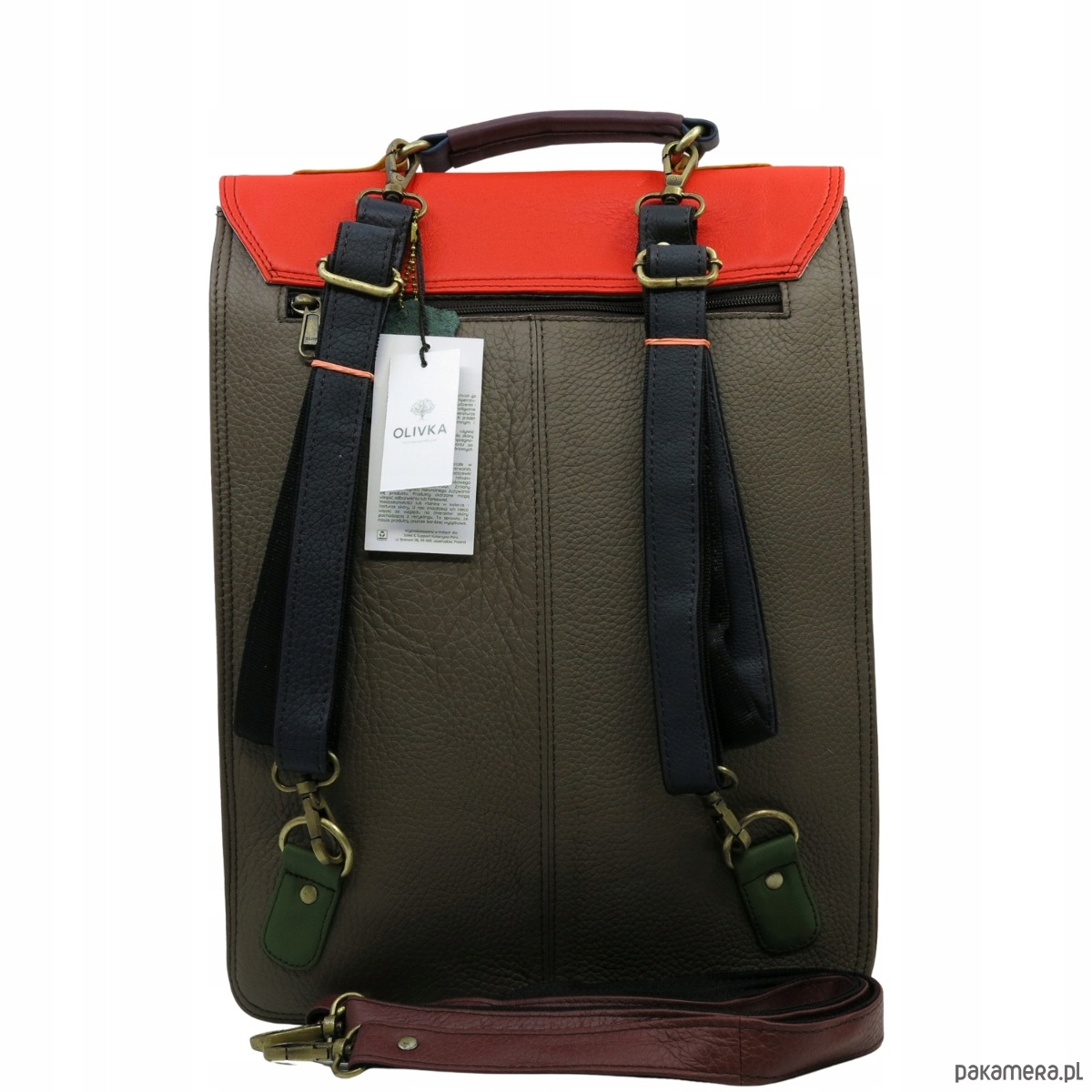 Plecak skórzany damski torebka 2w1 elegancki pojemny mieści A4 OLIVKA