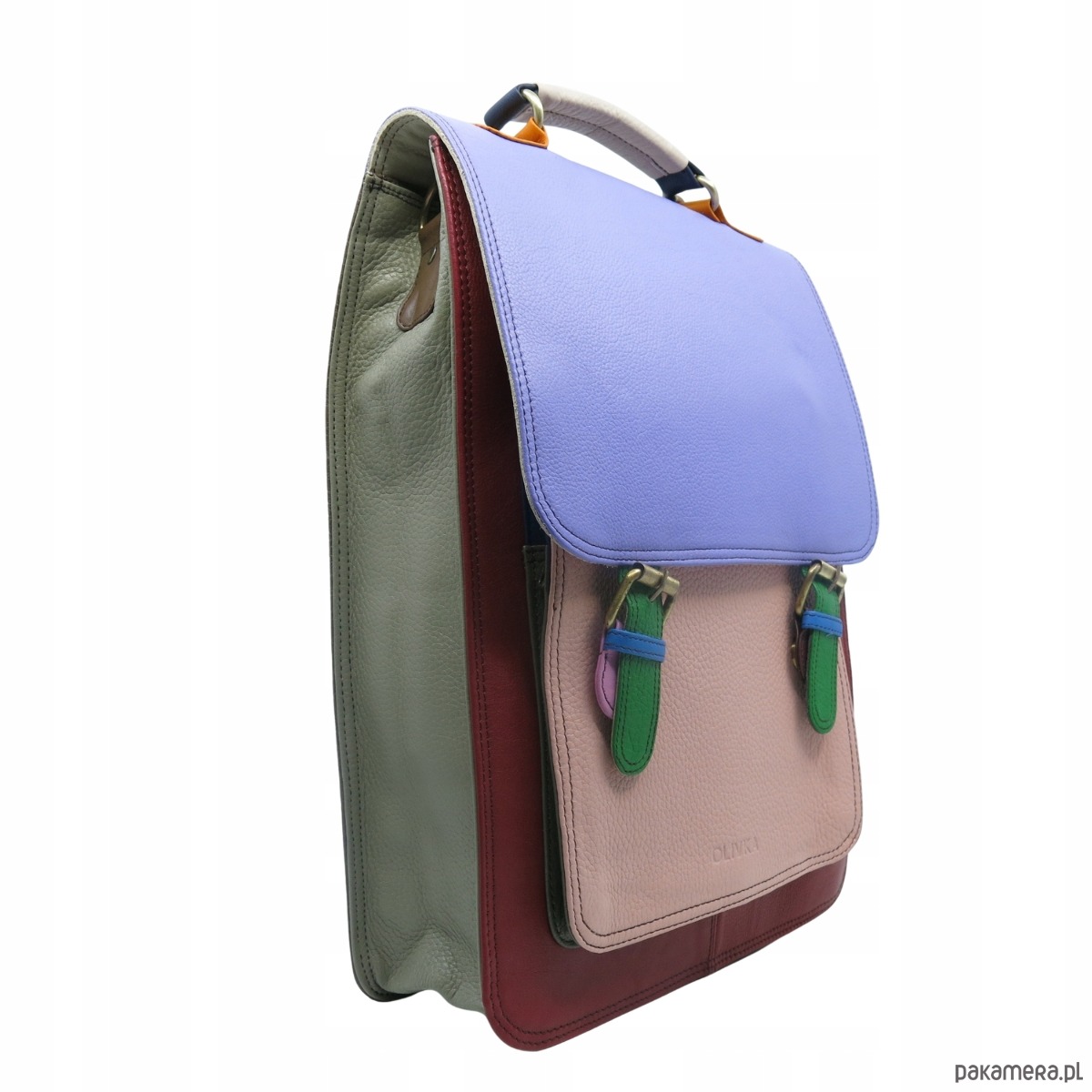 Plecak skórzany damski torebka 2w1 elegancki pojemny mieści A4 OLIVKA