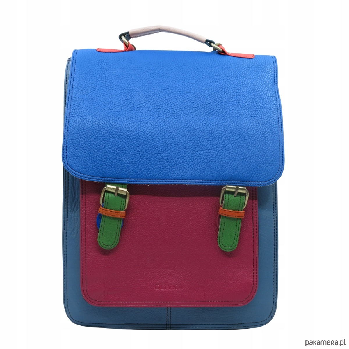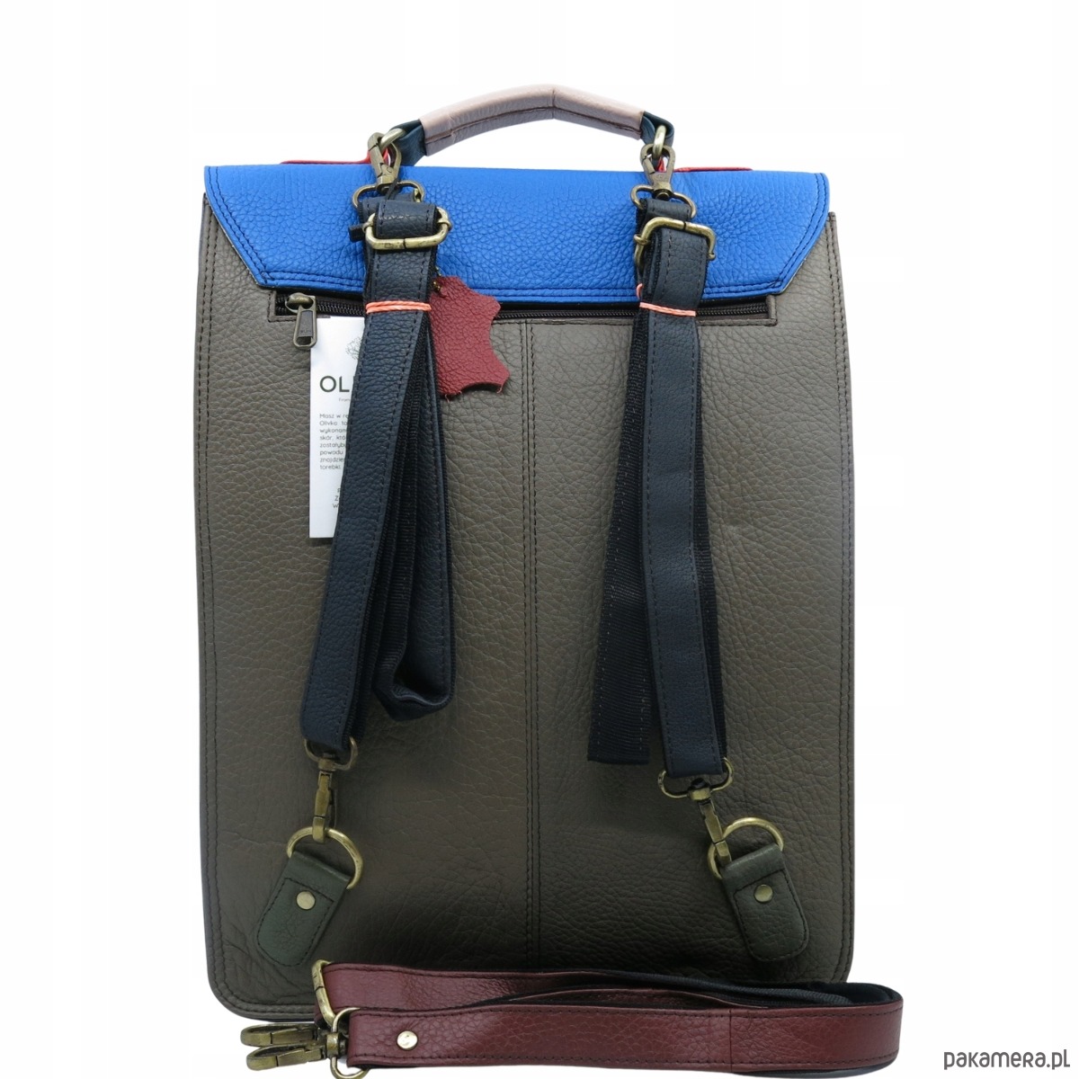Plecak skórzany damski torebka 2w1 elegancki pojemny mieści A4 OLIVKA