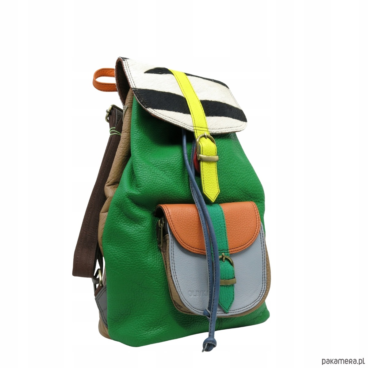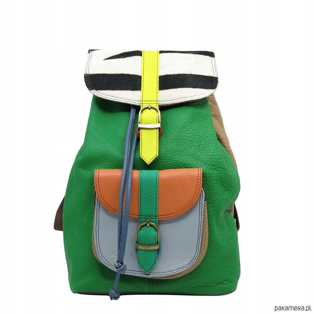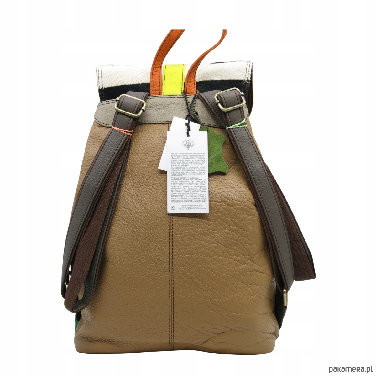 Plecak skórzany kieszenie pojemny kolorowy ze skrawków oryginalny OLIVKA
