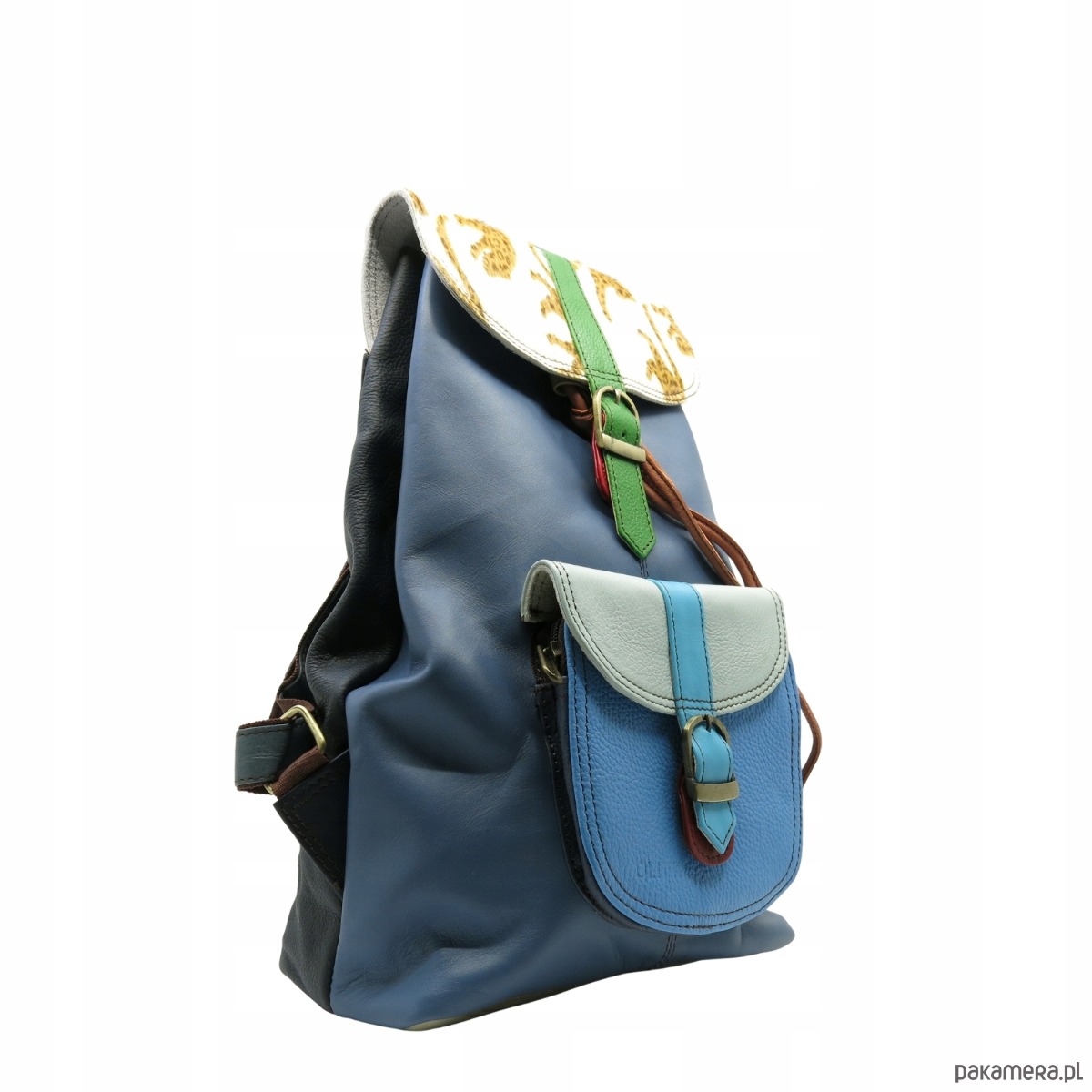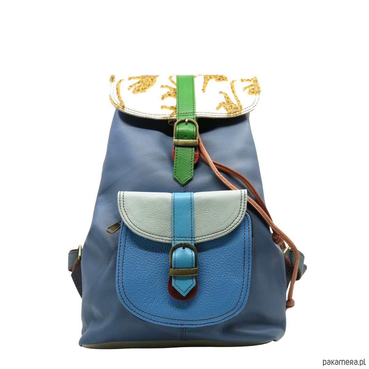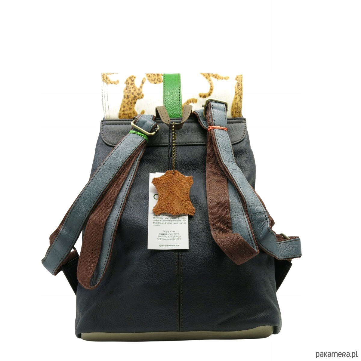 Plecak skórzany kieszenie pojemny kolorowy ze skrawków oryginalny OLIVKA