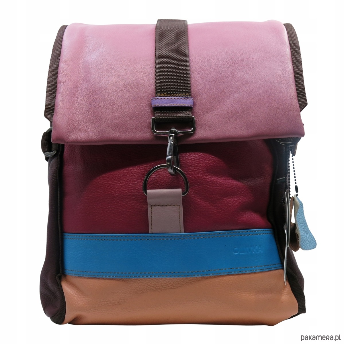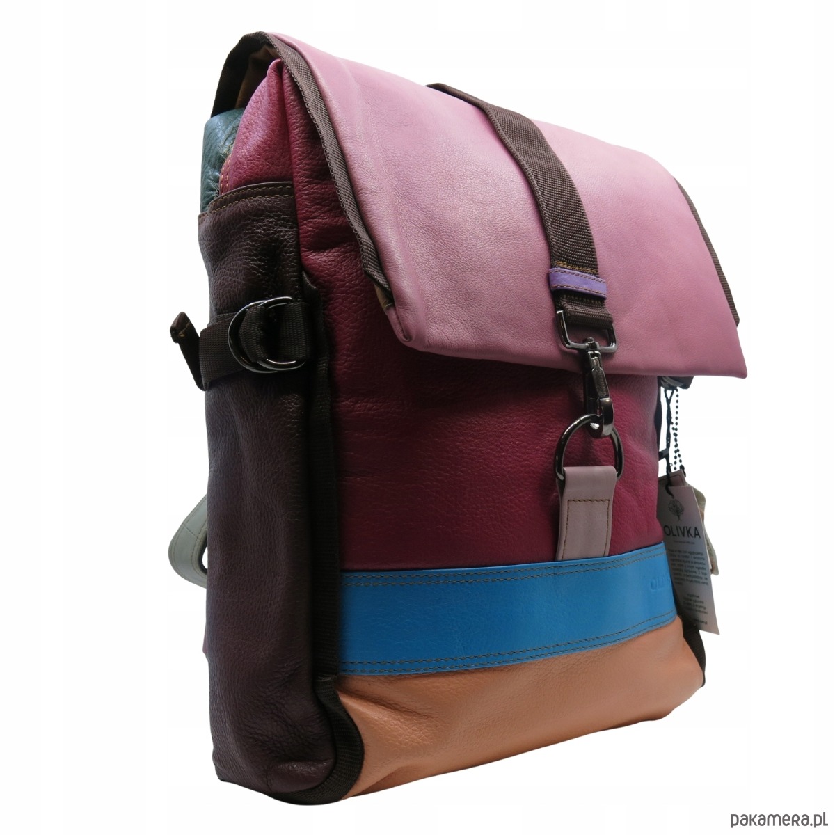 Plecak skórzany pojemny stylowy miejski mieści A4 kolorowy wygodny OLIVKA