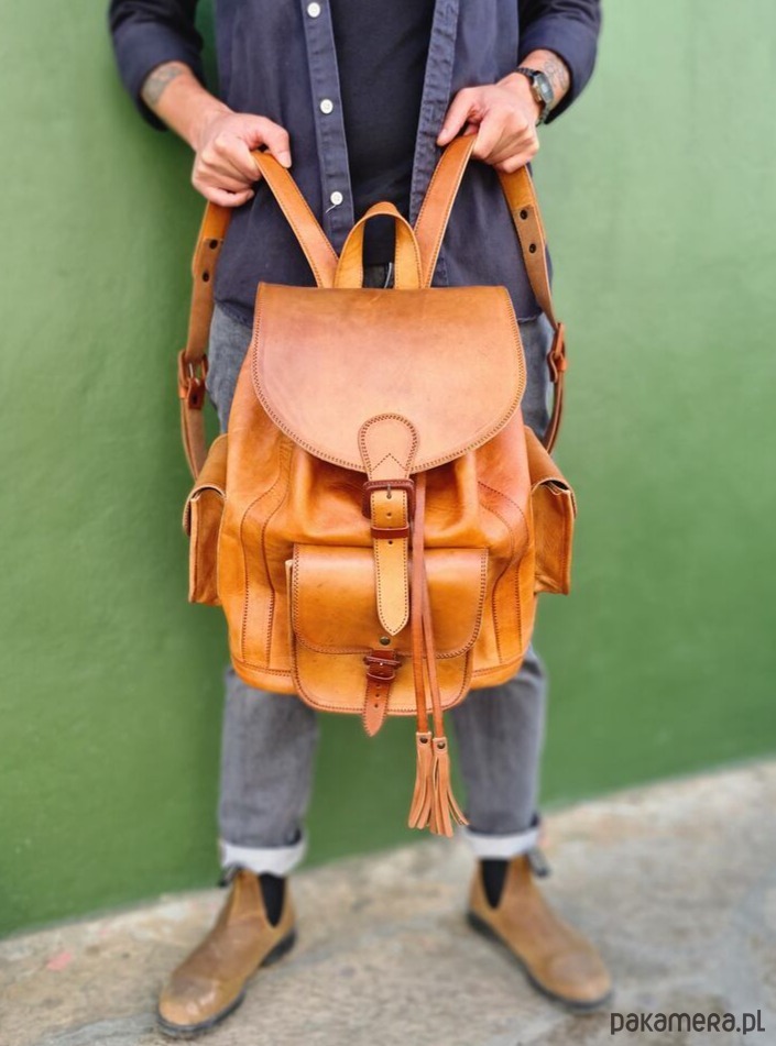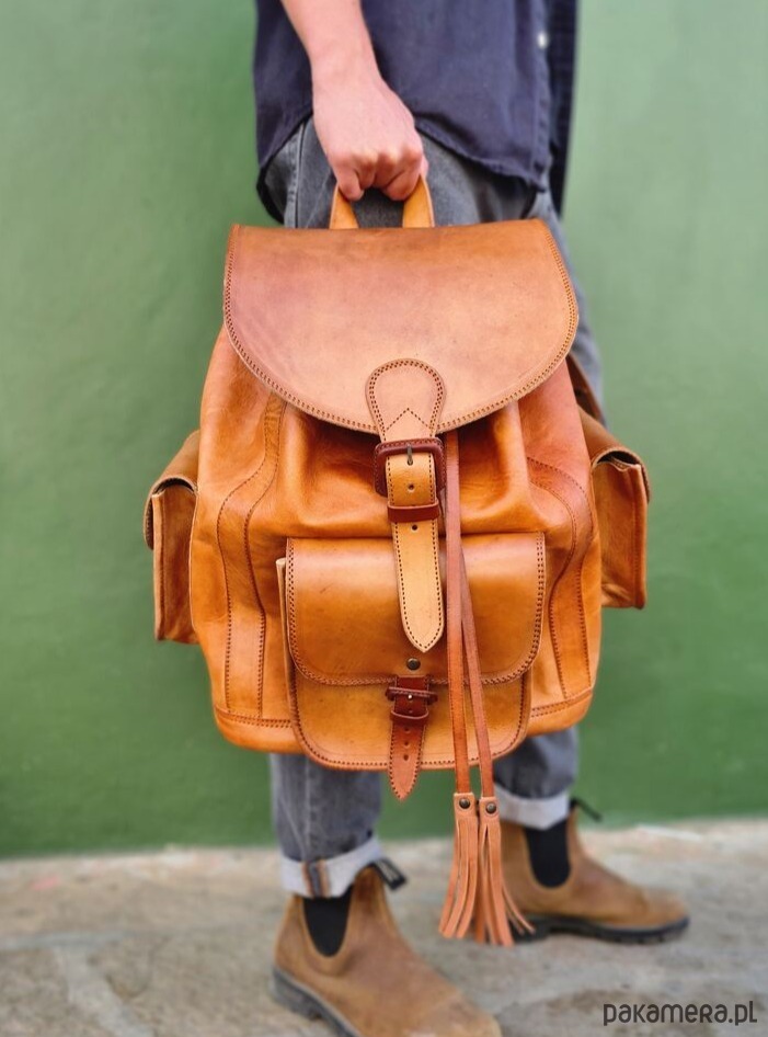 Duży plecak ze skóry naturalnej wykonany od początku do końca ręcznie w Meksyku to mistrzowsko wykonany produkt, który zachwyca zarówno swoją jakością, jak i unikalnym stylem. Każdy detal został starannie wykonany przez doświadczonych rzemieślników, co nadaje mu wyjątkowy charakter. Wykorzystana skóra naturalna jest trwała i pięknie nabiera patyny z upływem czasu, nadając plecakowi wyjątkowy, rustykalny urok. Solidne szwy oraz staranne wykończenie sprawiają, że jest to niezwykle trwały i praktyczny dodatek, idealny zarówno na co dzień, jak i w podróży. Plecak ma cztery dodatkowe kieszonki na zewnątrz, które pomieszczą wszystkie niezbędne dodatki. To nie tylko wyjątkowy dodatek do garderoby, ale także wyraz szacunku dla tradycji meksykańskiego rzemiosła.