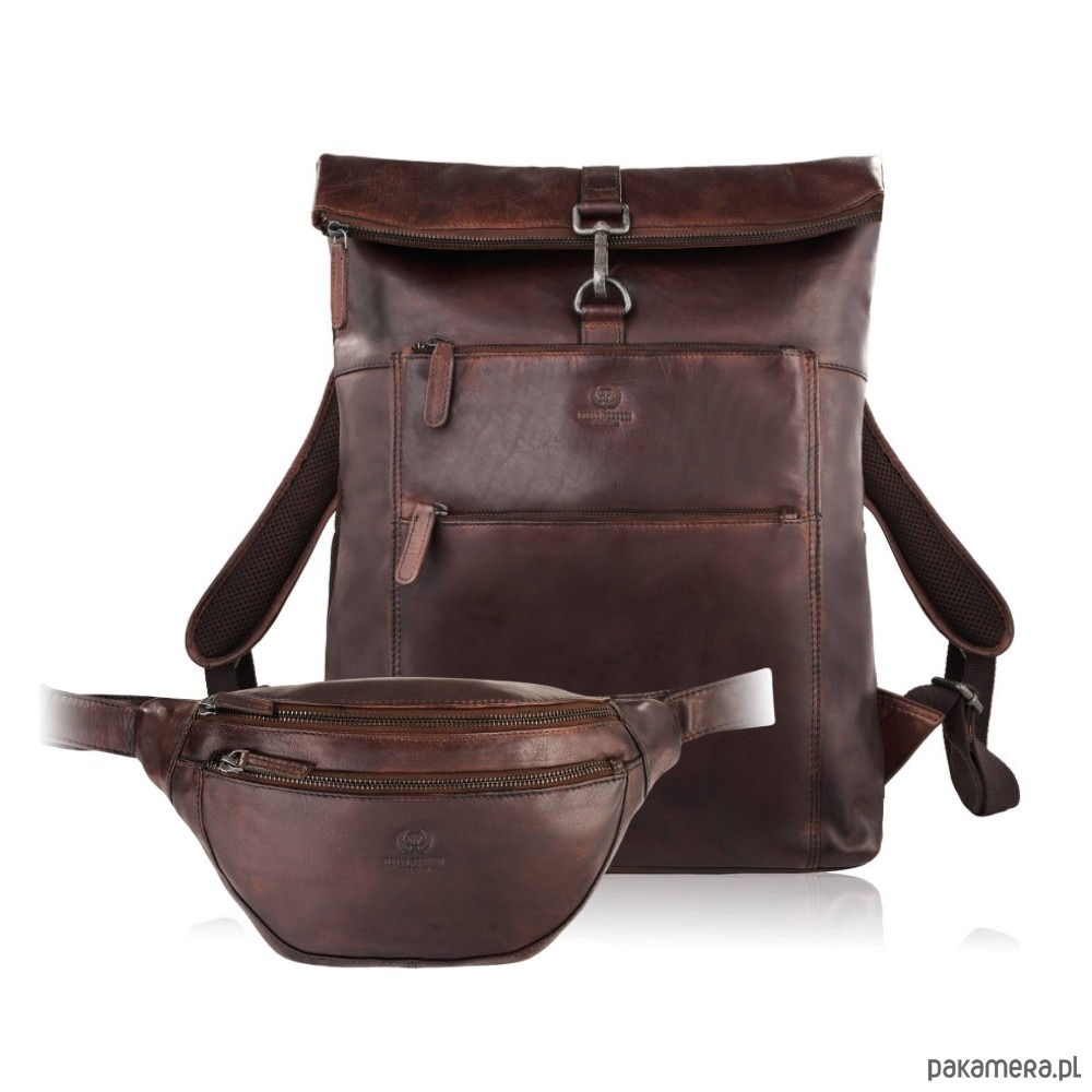 Plecak skórzany SL-02-BR i saszetka nerka męska SL-04-BR Zestaw prezentowy ZU