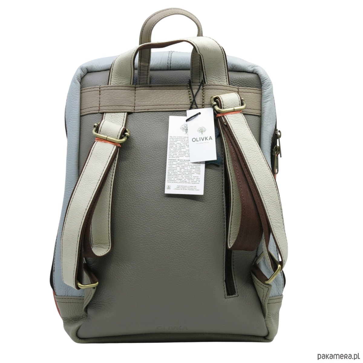 Plecak skórzany ze skrawków oryginalny pojemny kieszenie mieści A4 OLIVKA