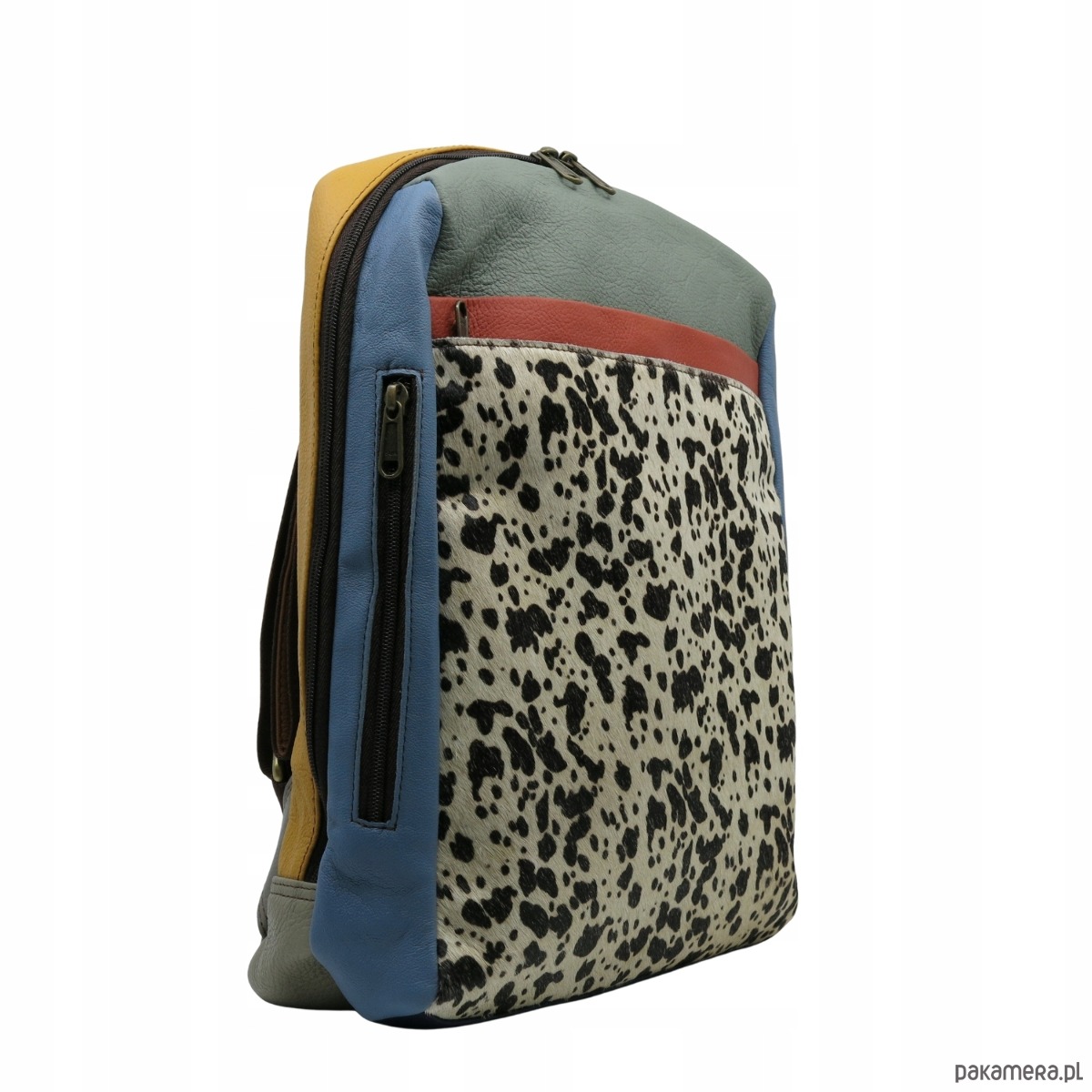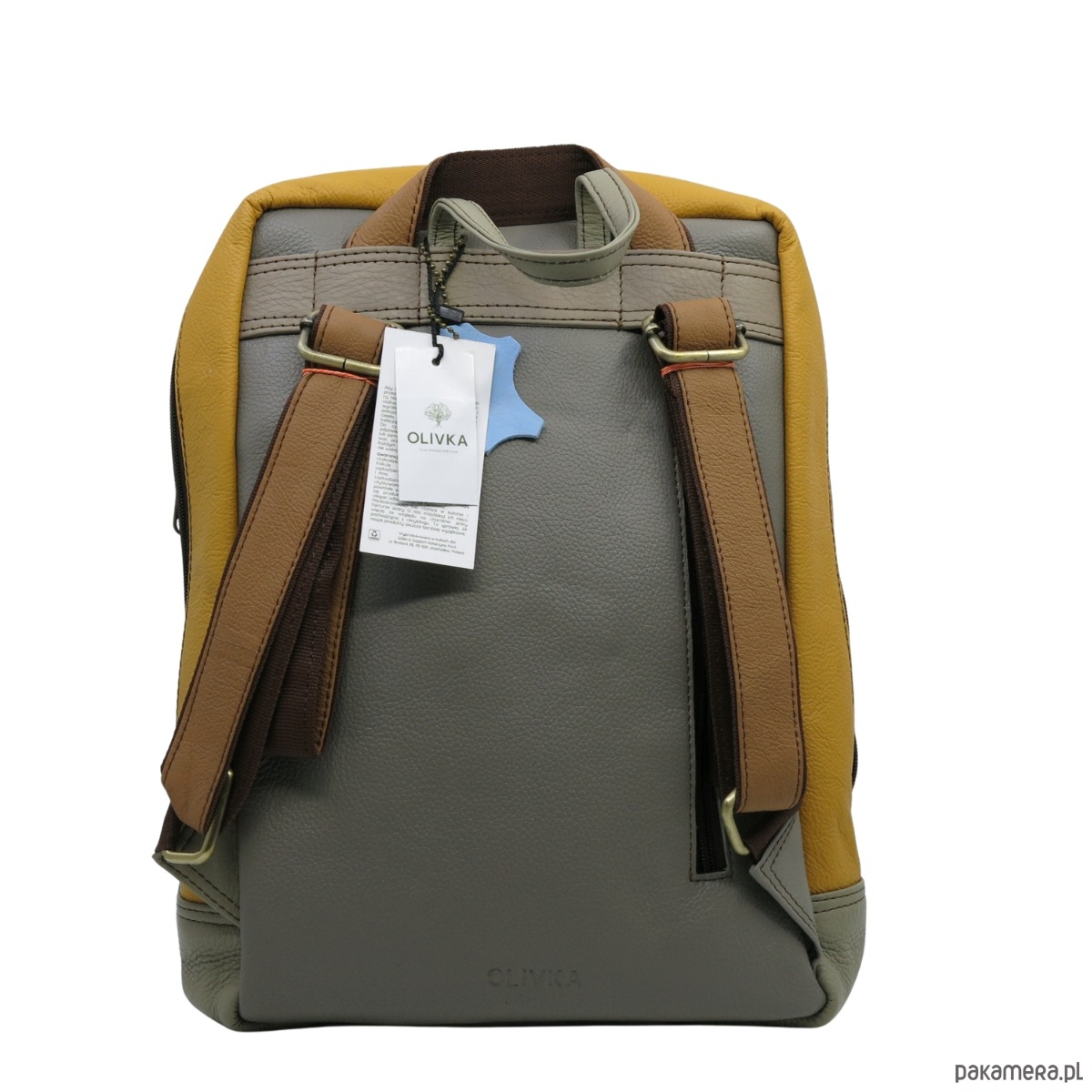 Plecak skórzany ze skrawków oryginalny pojemny kieszenie mieści A4 OLIVKA