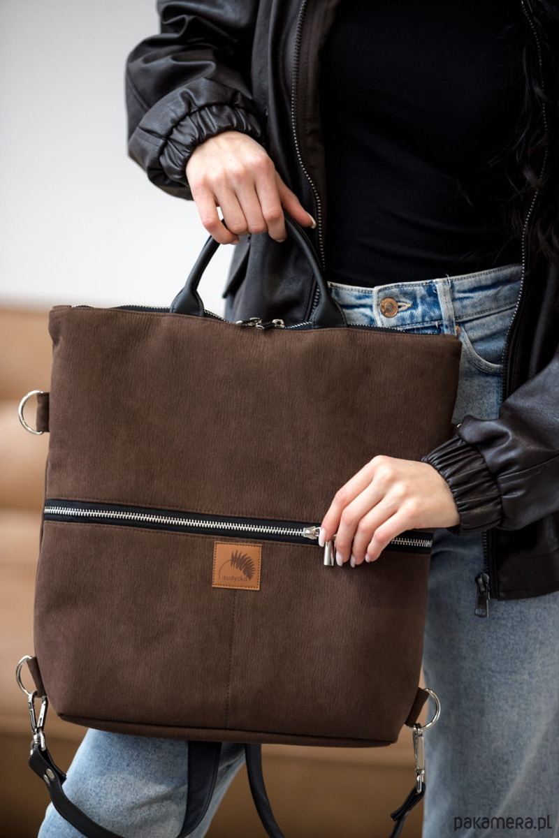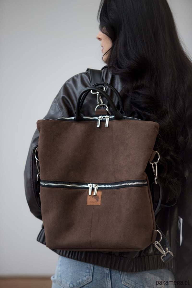 Plecak / torba 2 w 1 z nubuku ciemny brąz
