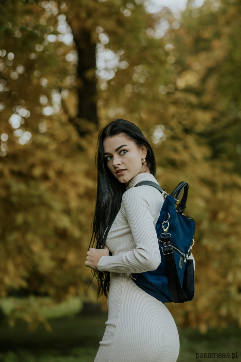 Plecak / torba 2 w 1 z nubuku tapicerskiego granatowy