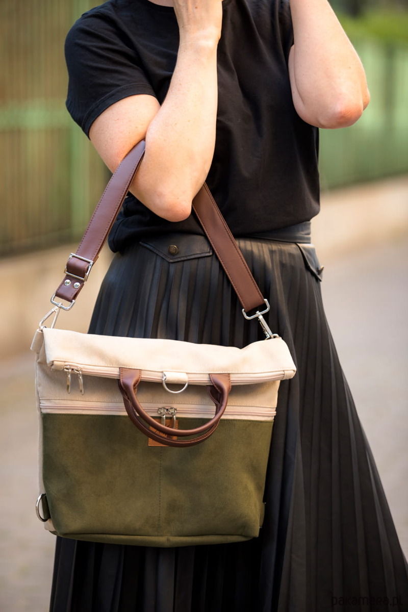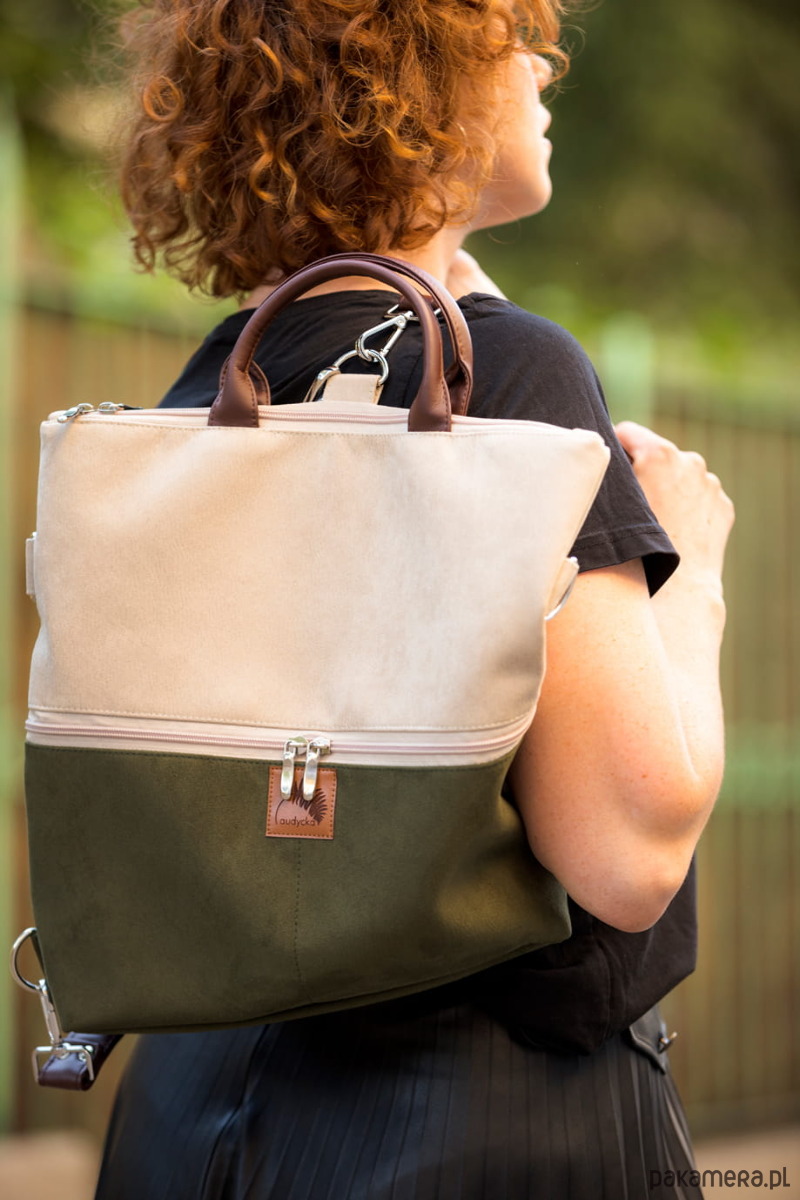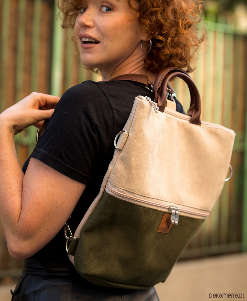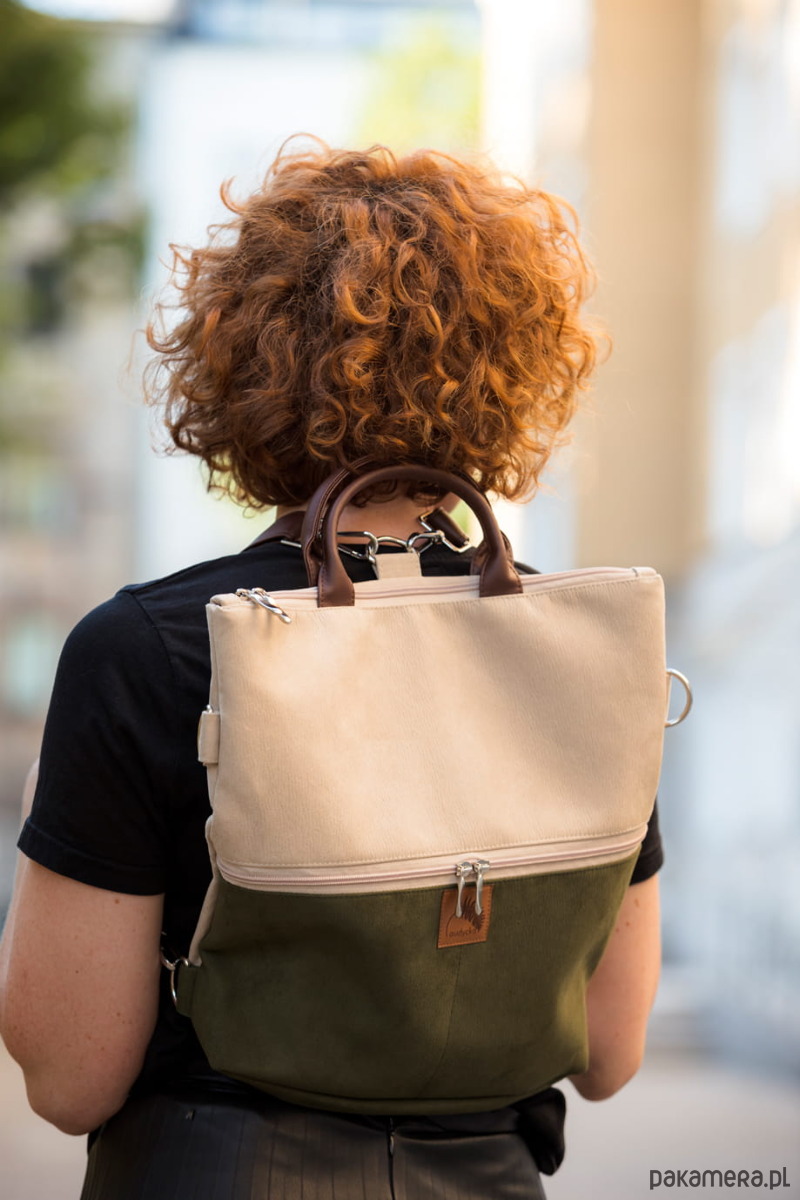 Plecak / torba 2 w 1 z nubuku tapicerskiego w kolorze beżowym i khaki