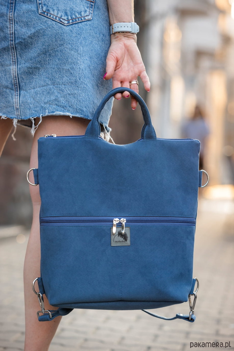 Plecak / torba 2 w 1 z nubuku tapicerskiego w kolorze ciemno niebieskim