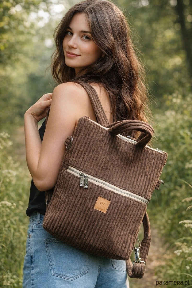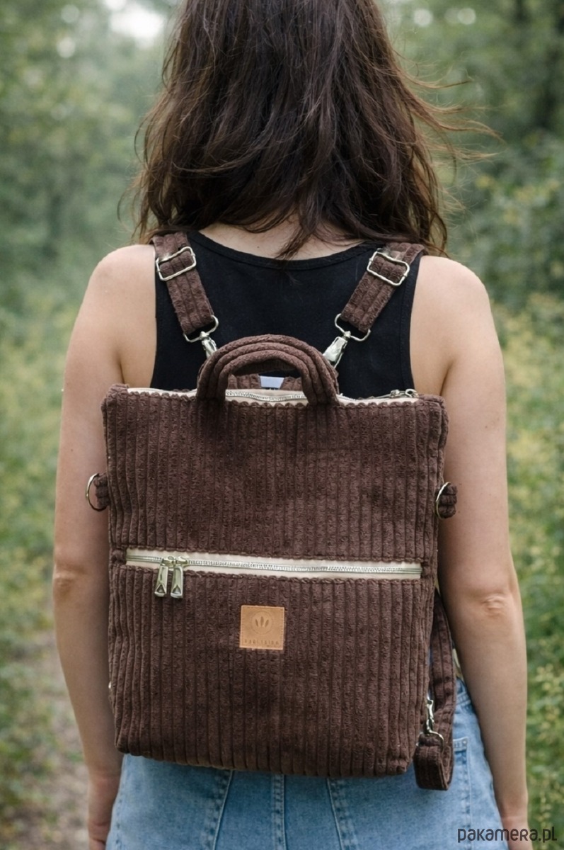 Plecak torba 2w1 sztruksowy Brązowy