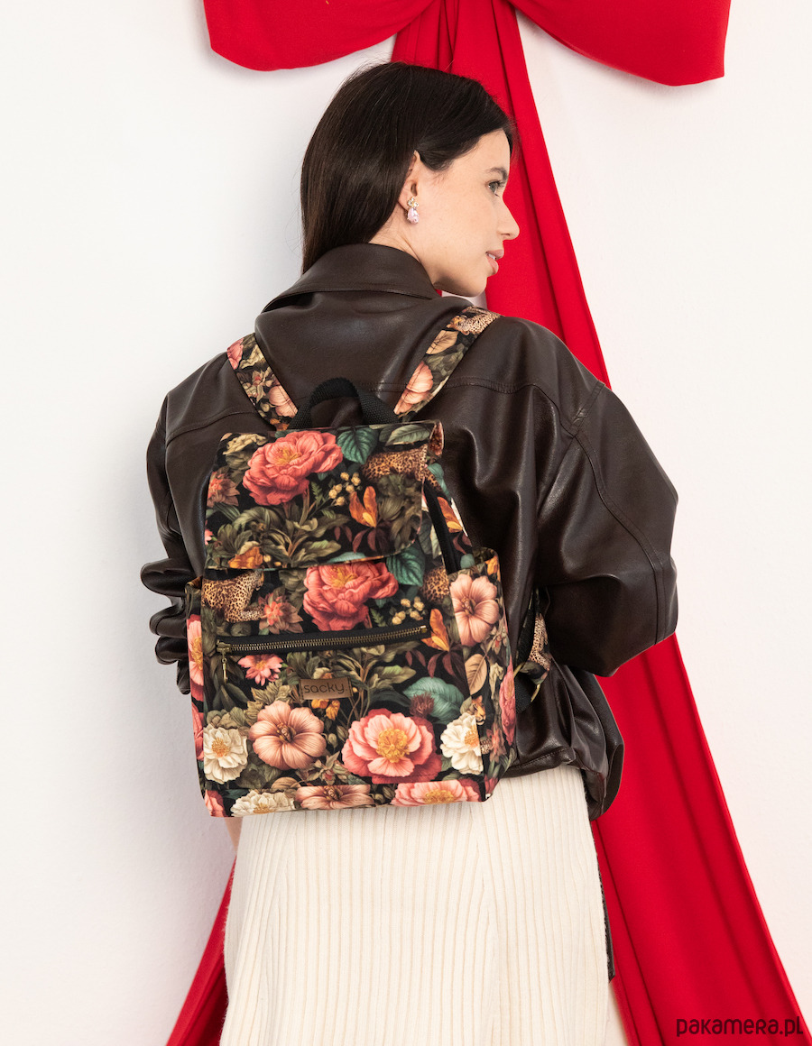 Plecak welurowy lucky dark peony (Różne rozmiary)