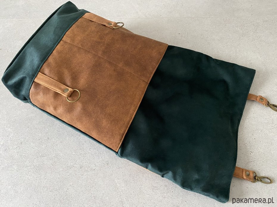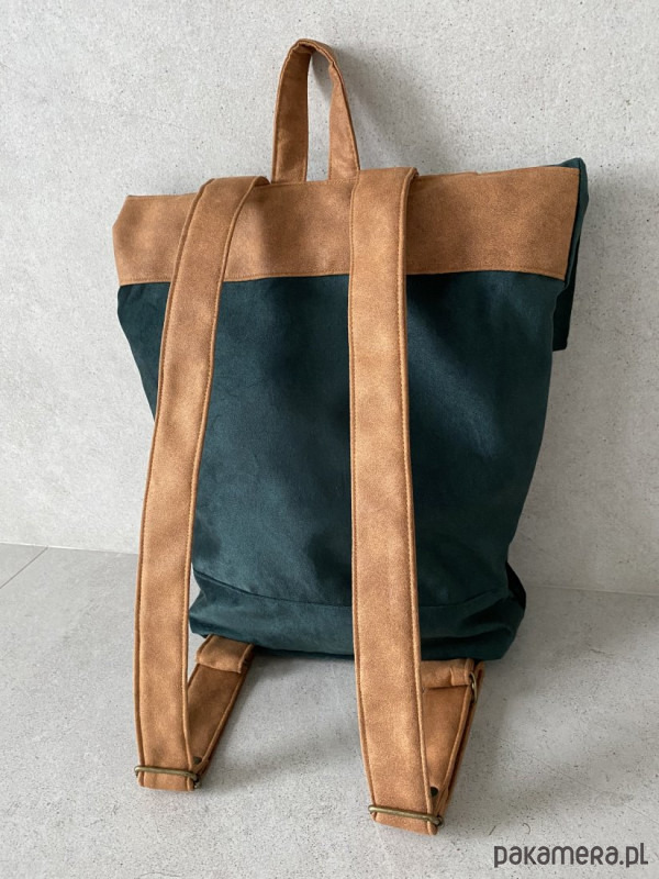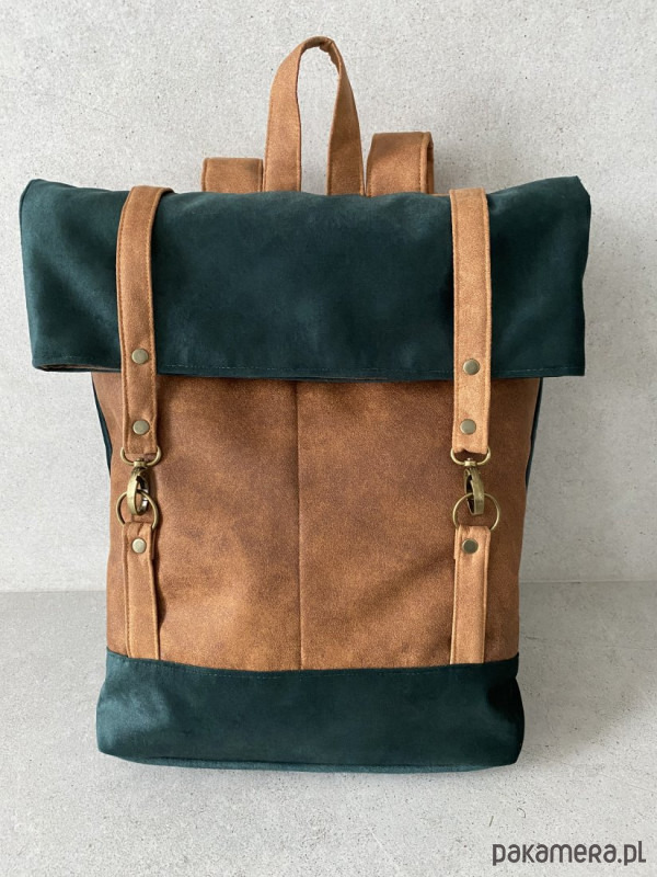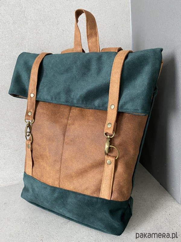 Plecak włóczykija - butelkowa zieleń, koniak, cynamon