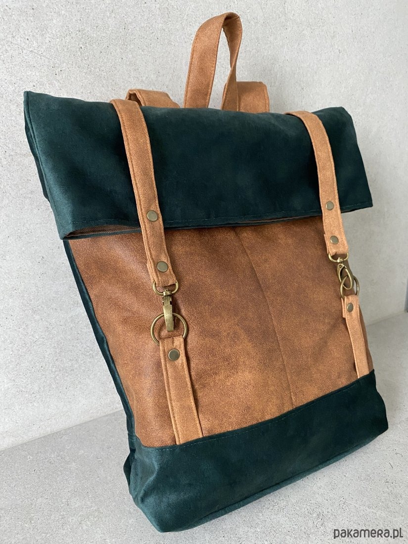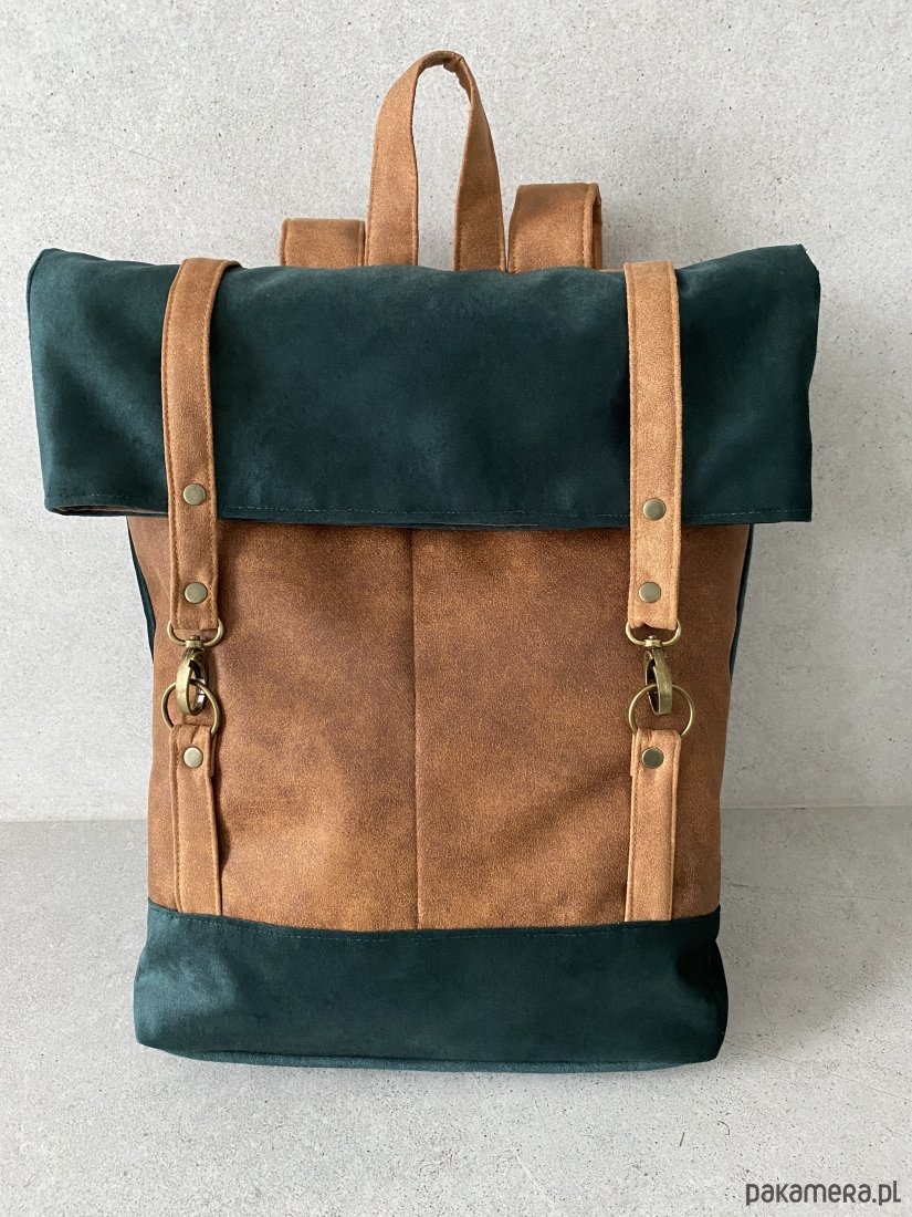 Plecak włóczykija - butelkowa zieleń, koniak, cynamon