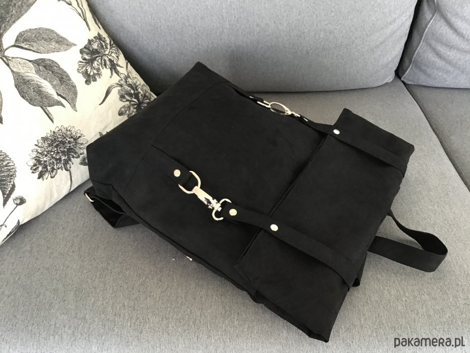 Pakowny plecak wykonany z alcantry (syntetycznego zamszu).