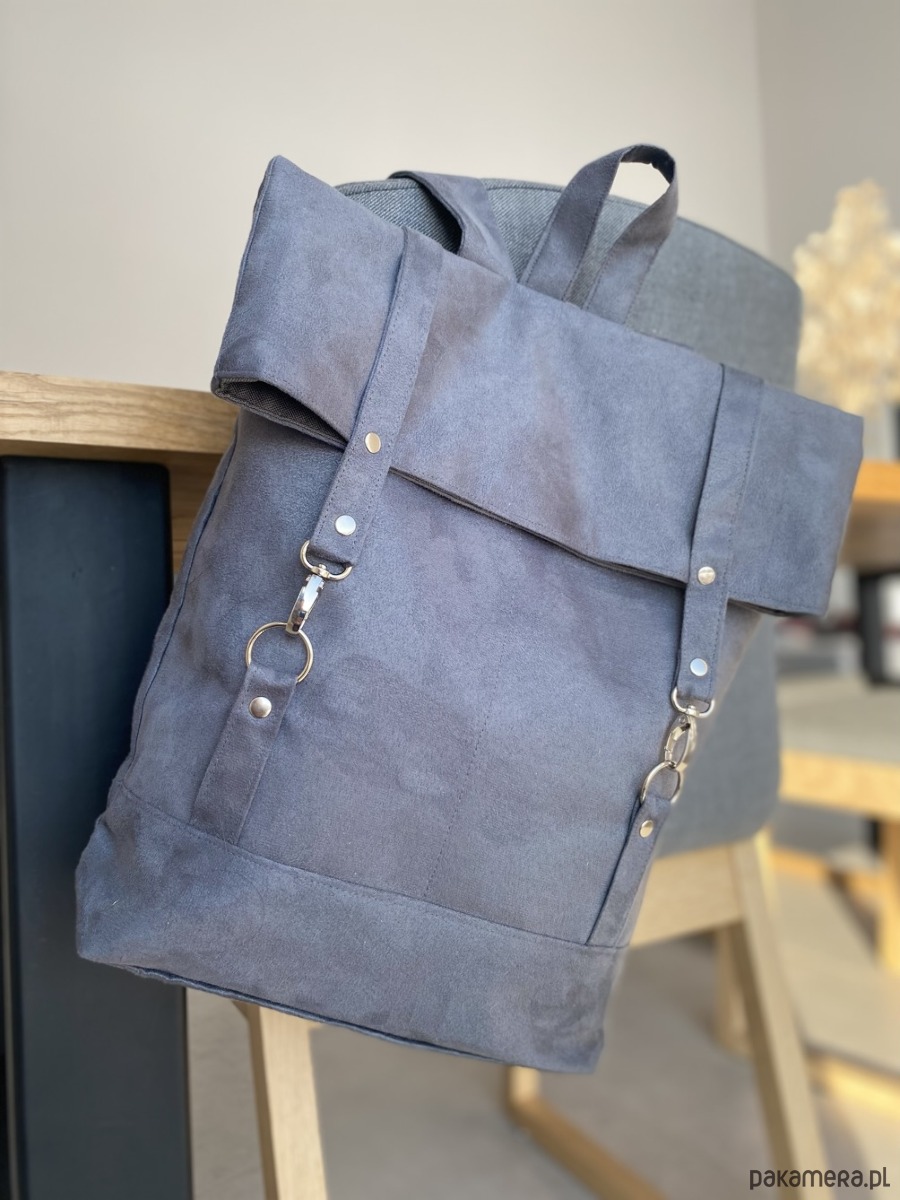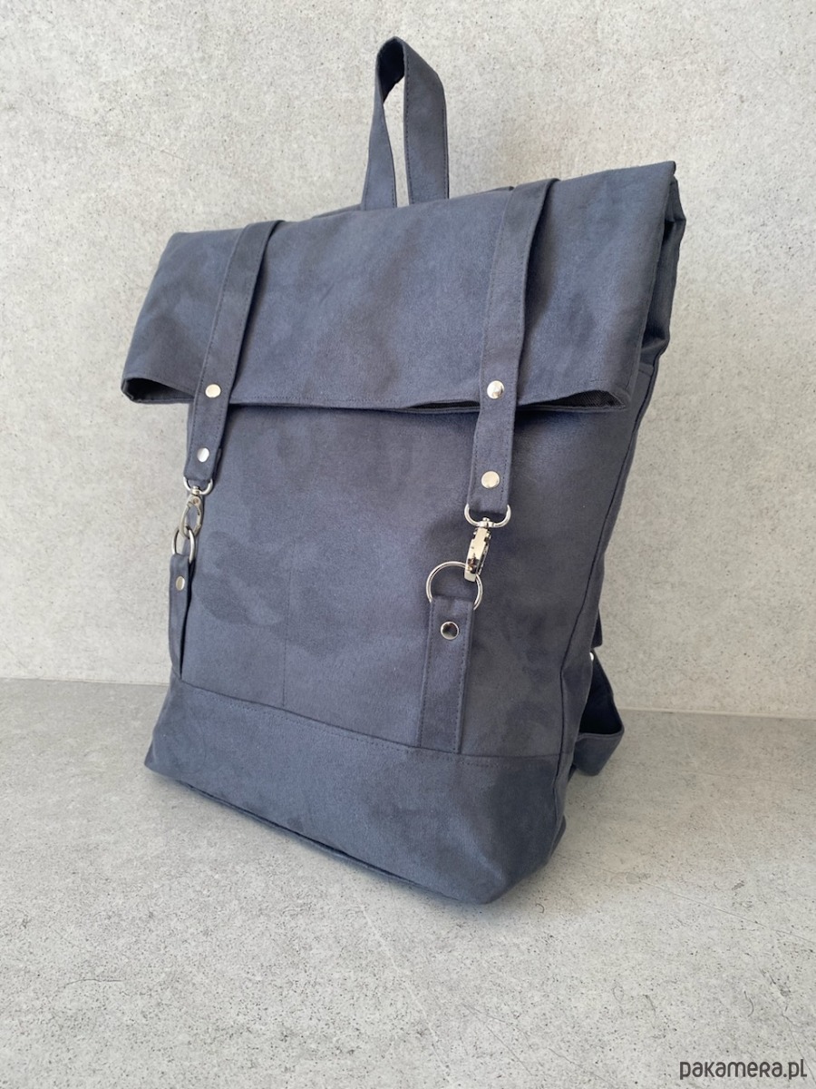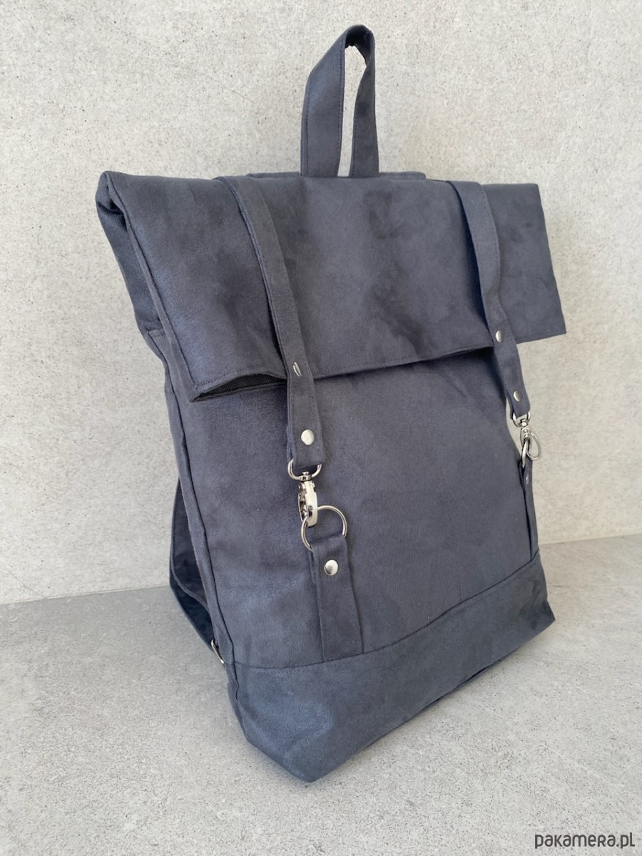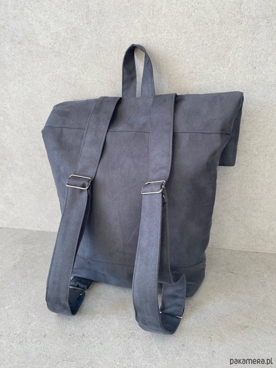 Pakowny plecak wykonany z alcantry (syntetycznego zamszu).