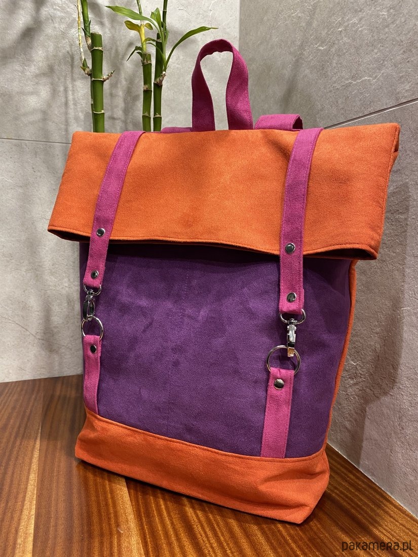 Plecak włóczykija - pomarańcz, fiolet, fuksja