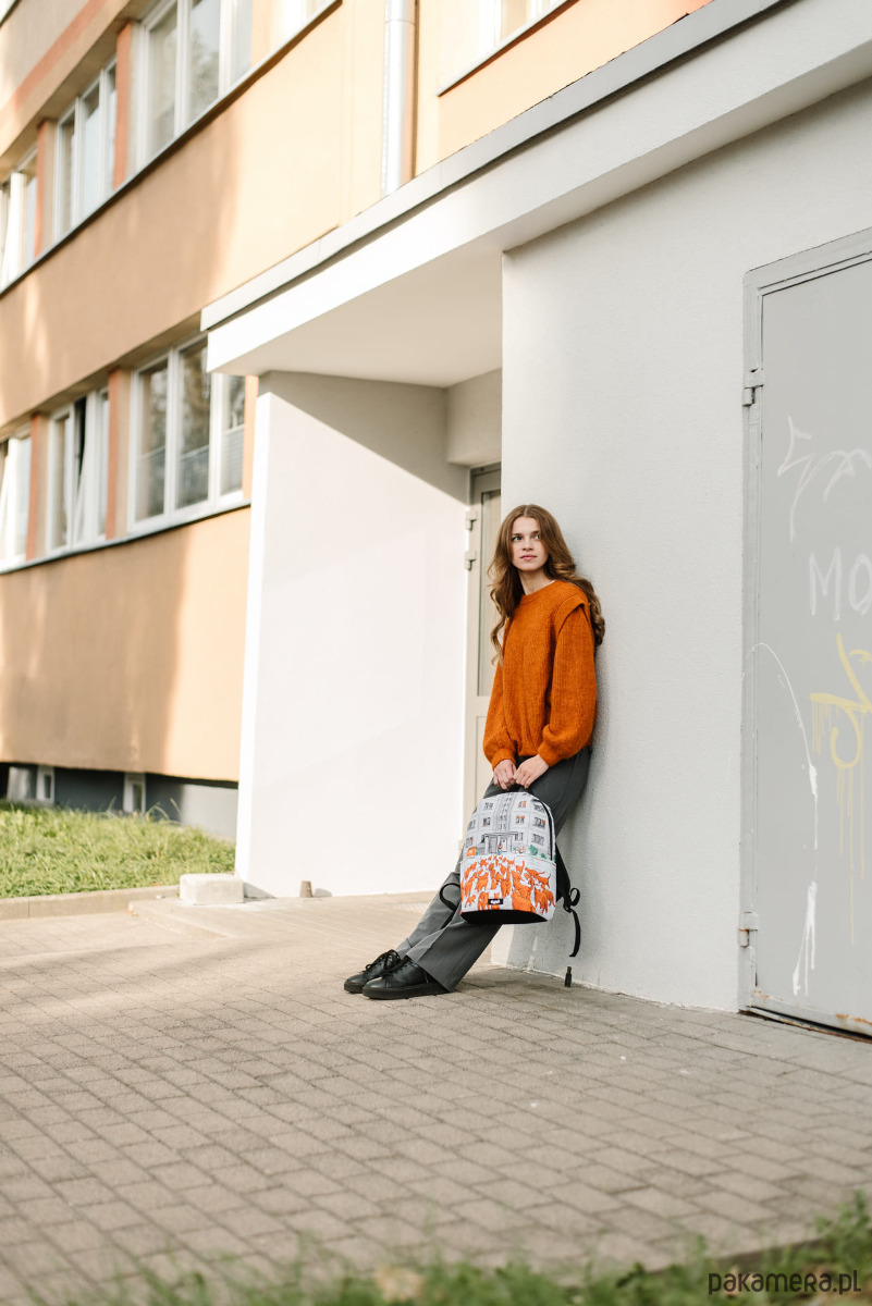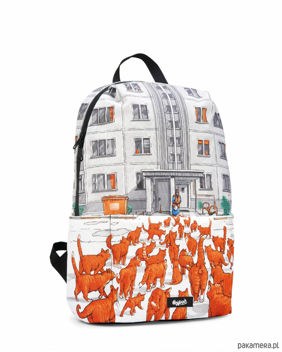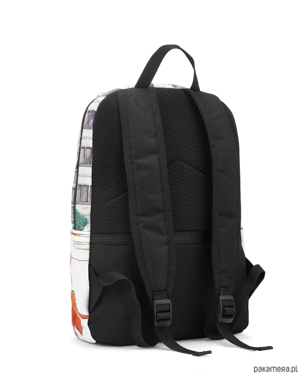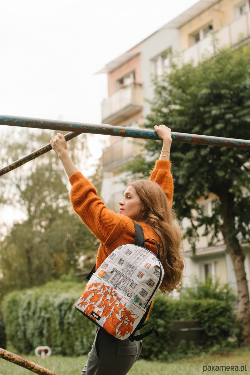 Plecak posiada dwie kieszonkę zapinane na zamek (z przodu i z tyłu).