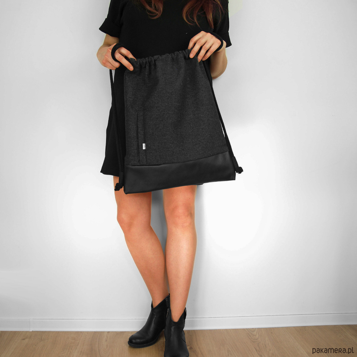 - Materiał: skóra ekologiczna, tkanina, canvas