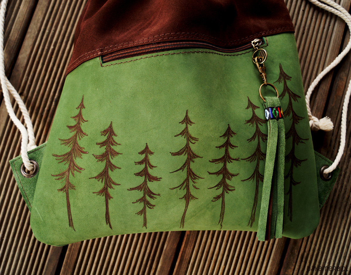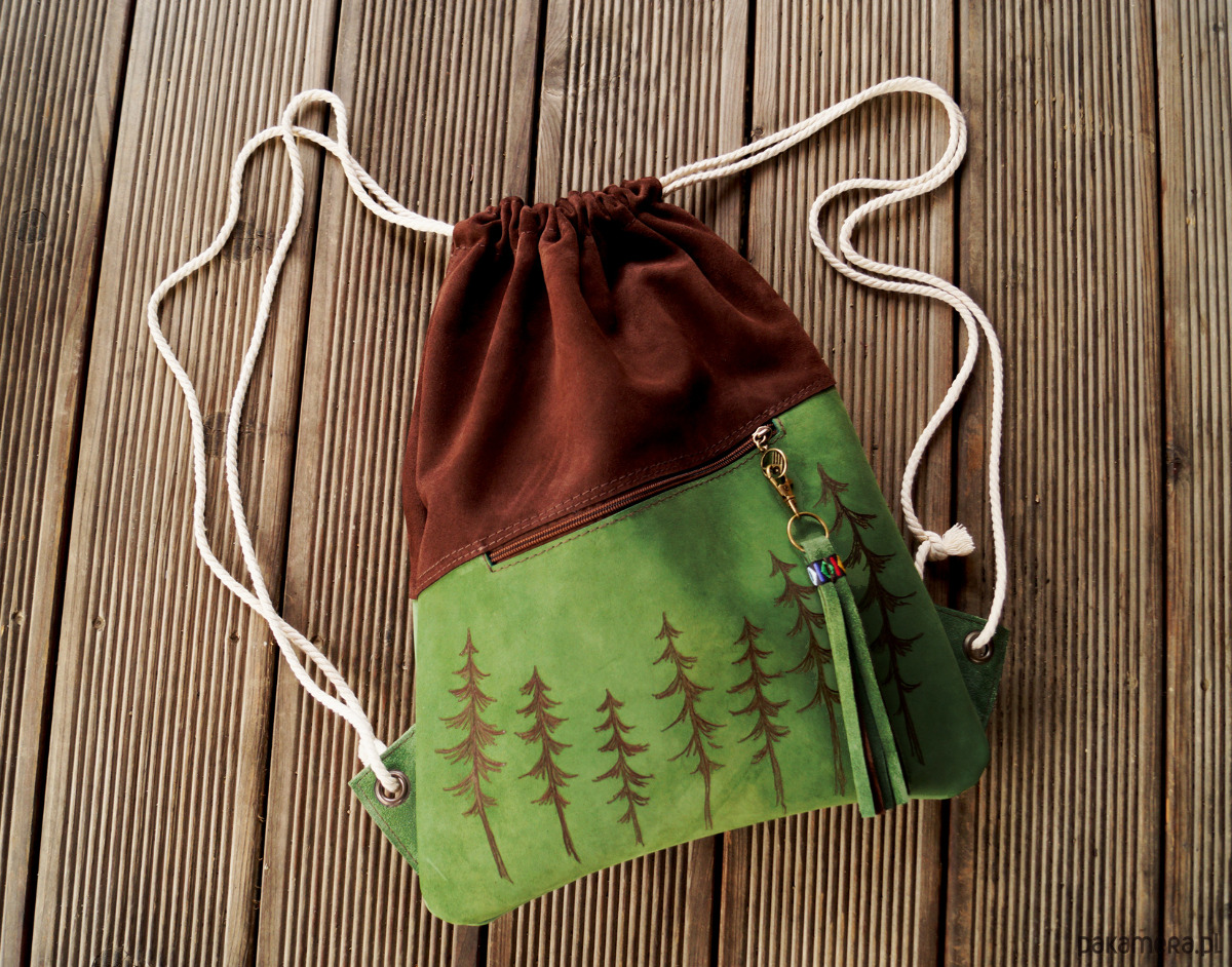 Plecak WOREK skóra naturalna zamszowa zieleń brąz CHOINECZKI