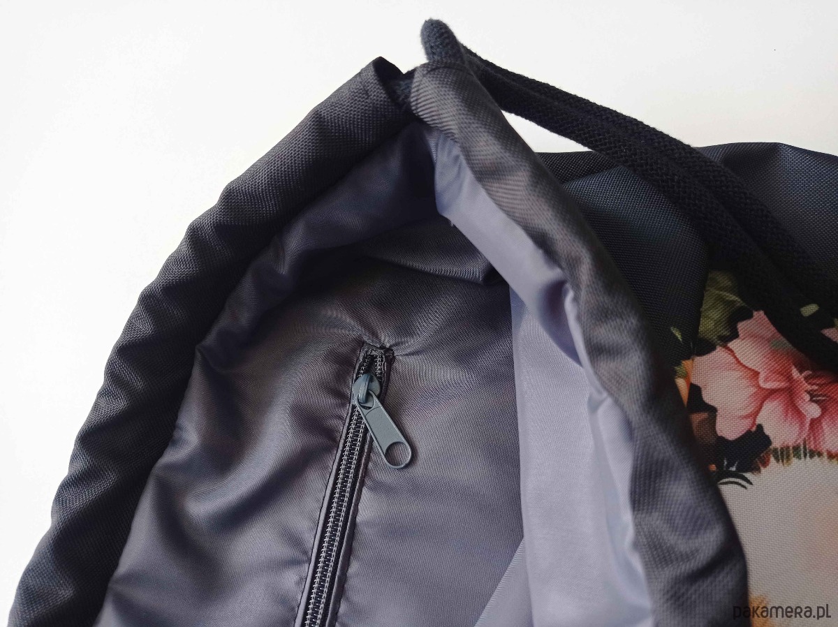 Plecak bardzo pojemny, z kieszenią wewnętrzną zapinaną na suwak.
