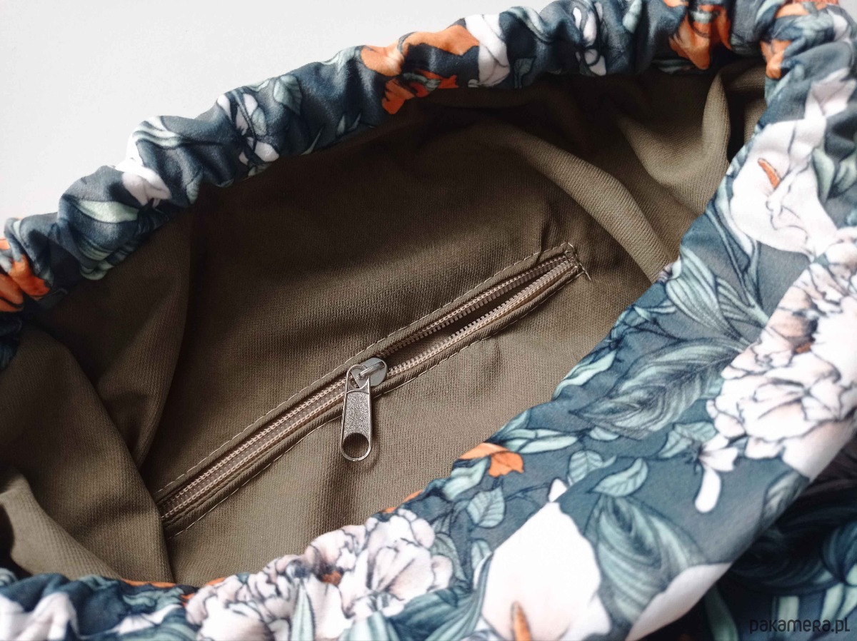 Plecak bardzo pojemny, z kieszenią wewnętrzną zapinaną na suwaki.