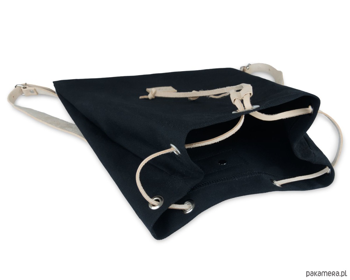 Plecak został wykonany z wodoodpornego materiału. Spośród innych dostępnych na rynku plecków-worków wyróżniają go skórzane elementy. Ze skóry naturalnej - juchtowej zostały wykonane szelki oraz sznurek do ściągania zawartości plecaka. Skóra juchtowa to najszlachetniejszy i najbardziej wytrzymały rodzaj skóry. Szelki posiadają możliwość regulacji długości, co zapewnia dopasowanie plecaka do sylwetki i wygodę noszenia. Dzięki wykorzystaniu najlepszych materiałów plecak charakteryzuje się wysoką wytrzymałością. Wykonany jest z dbałością o detale, końce materiału cordura są obszyte.