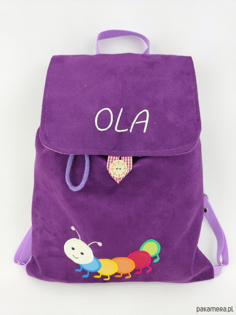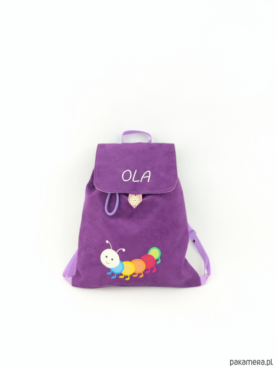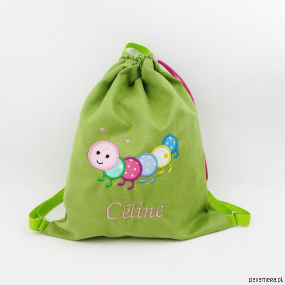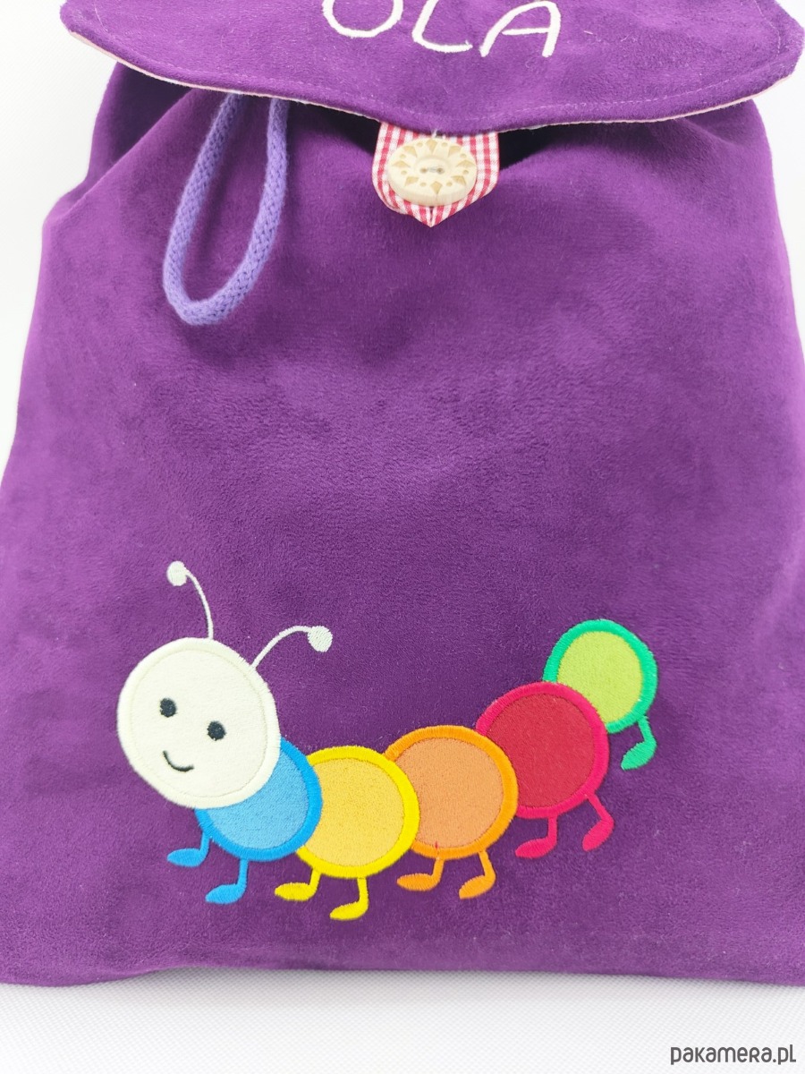 Plecak z kolorową gąsieniczką, plecak z imieniem dziecka